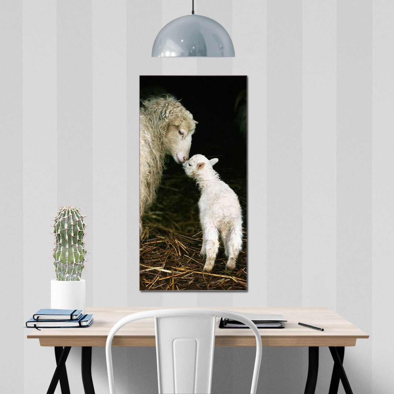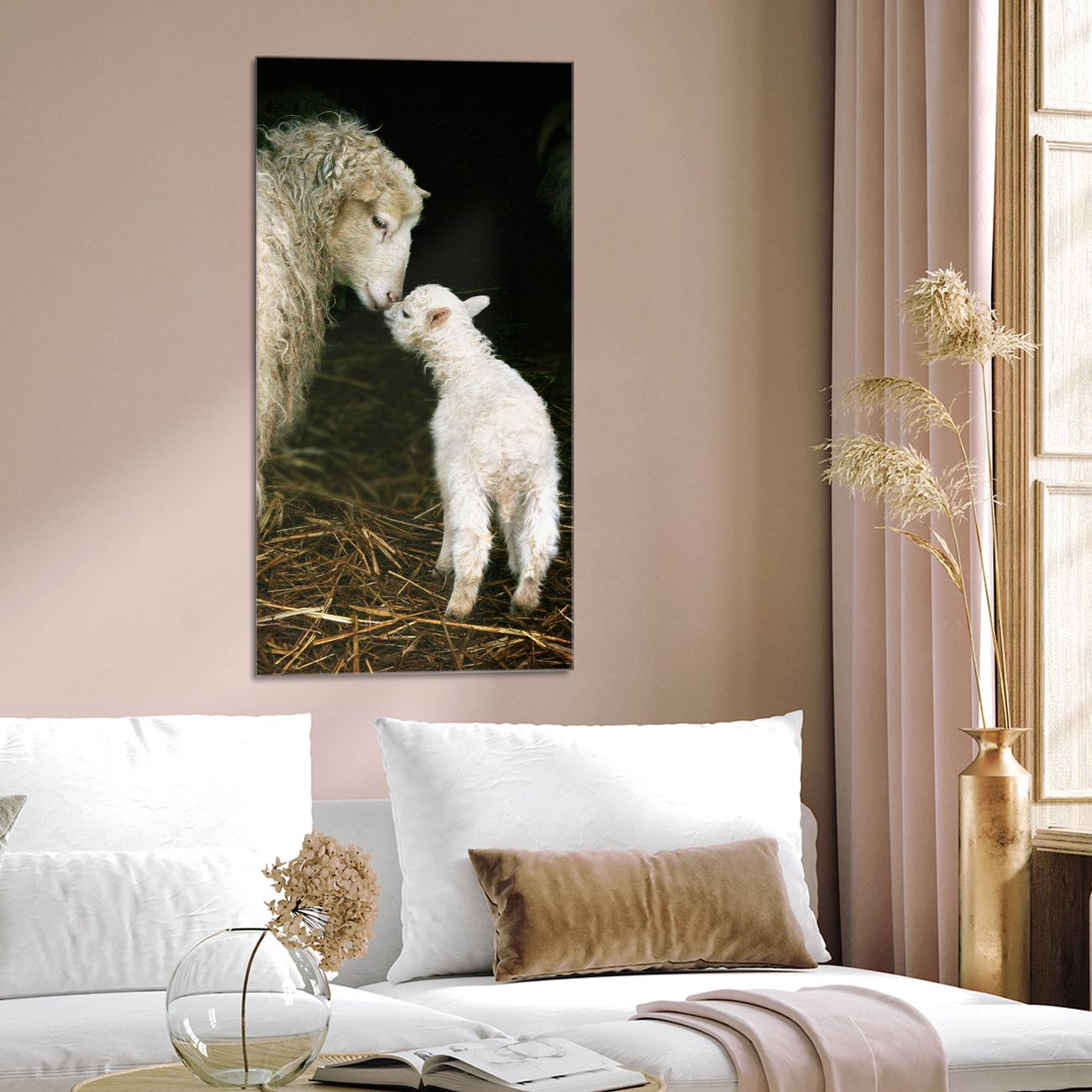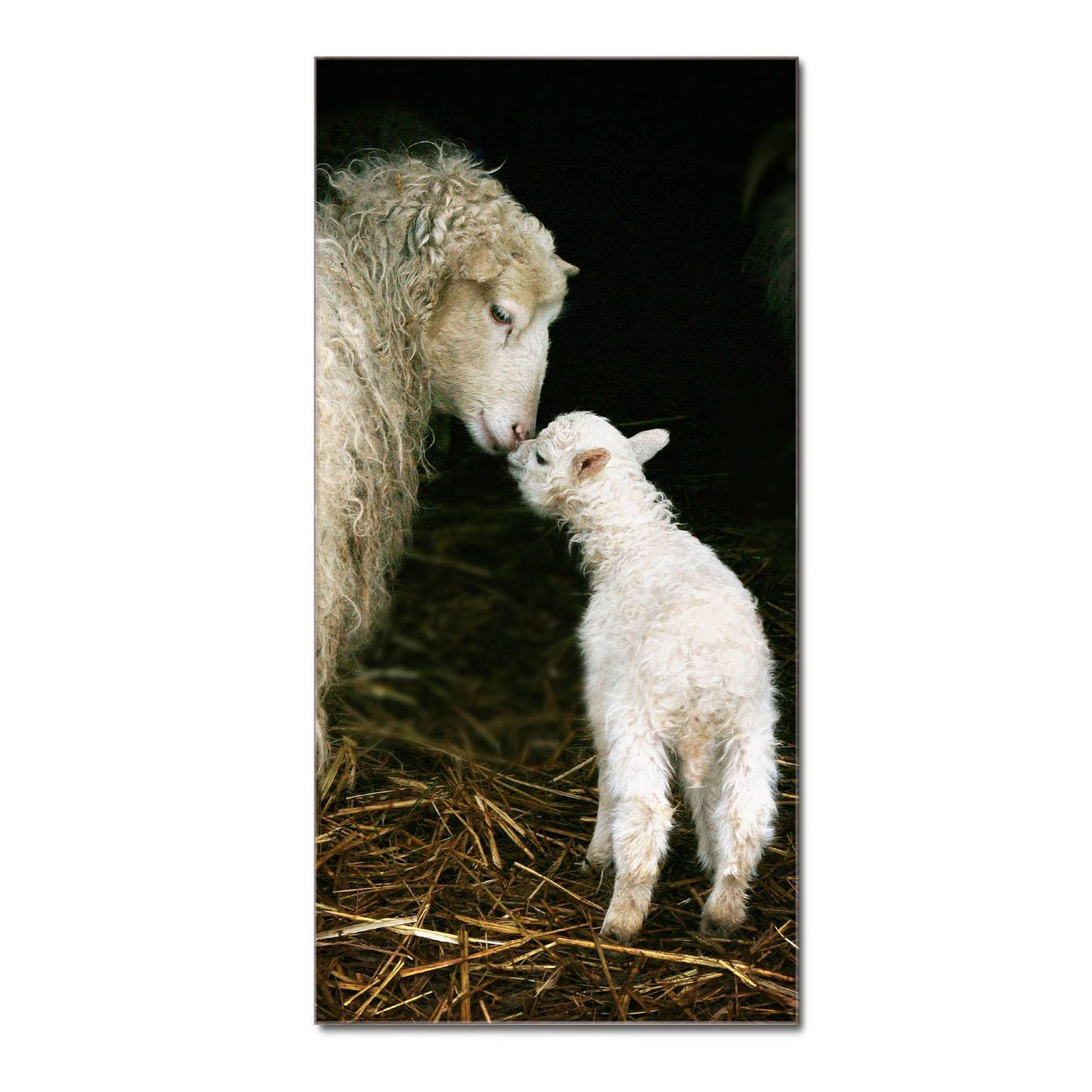 Brillantes Glasbild im Hochformat Schaf Und Lamm