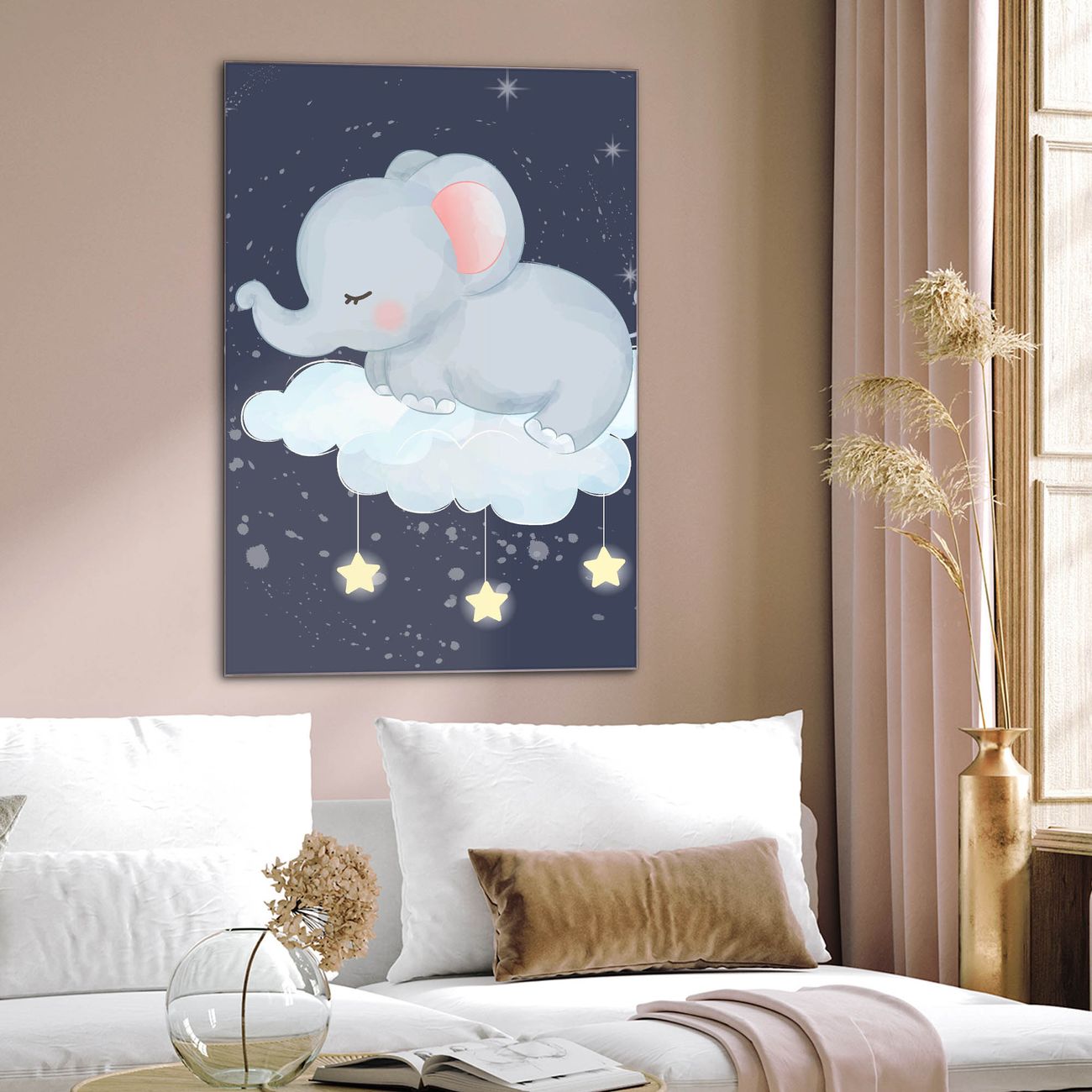 Brillantes Glasbild im Hochformat schlafender Elefant