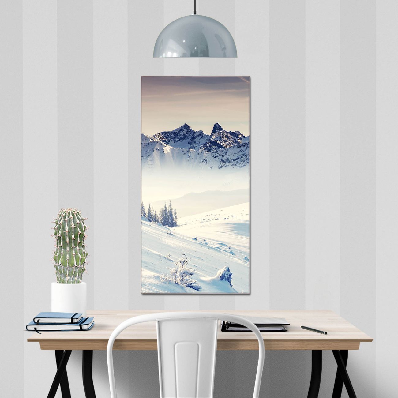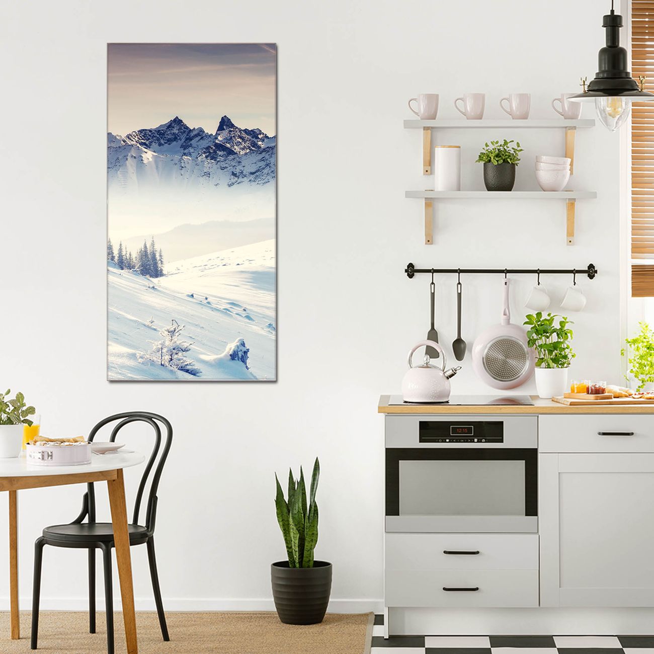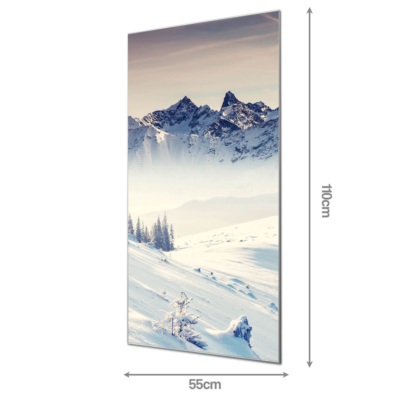 Unsere brillanten Glasbilder im Hochformat von banjado mit Motiv Schneebedeckte Berge sind der absolute Hingucker! Unsere Banjado Glasbilder sind sehr begehrt, weil sie top verarbeitet sind und sich ganz leicht montieren lassen. Schon mit wenigen Handgriffen hängen sie an der Wand und strahlen mit höchster brillianz. Durch die Ramenlose Herstellung schwebt das Echtglasbild förmlich an der Wand. Das Motiv erscheint besonders ausdrucksstark, hochwertig und ist hinter dem Echtglas geschützt.