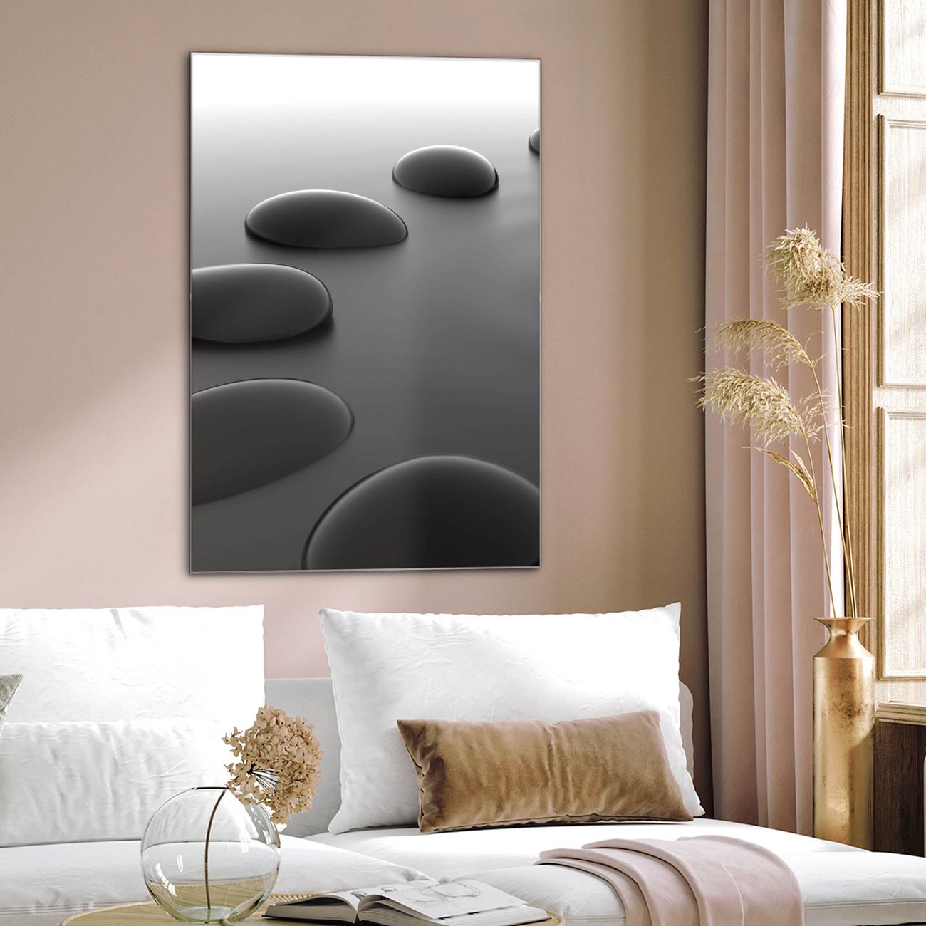 Brillantes Glasbild im Hochformat Schwarze Steine