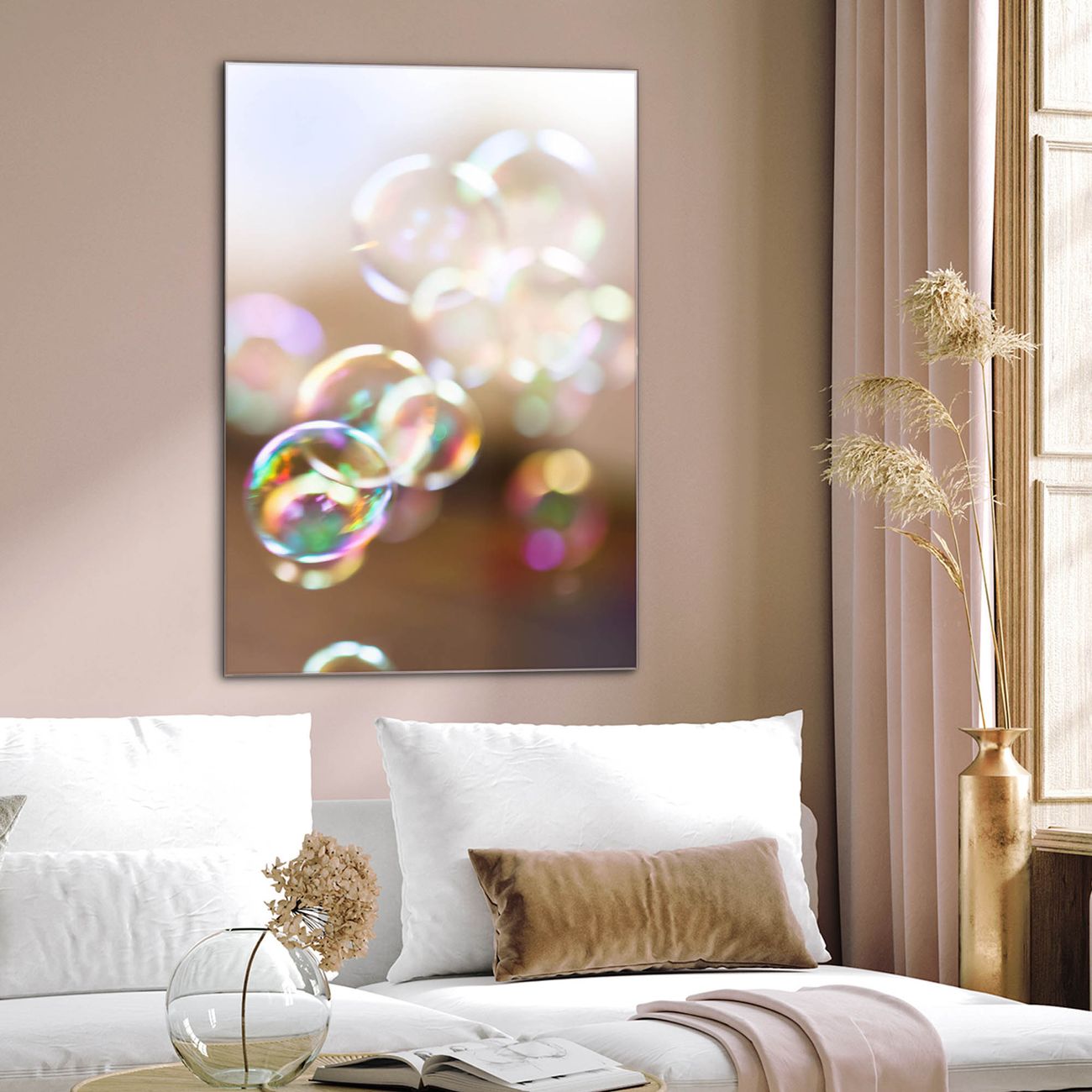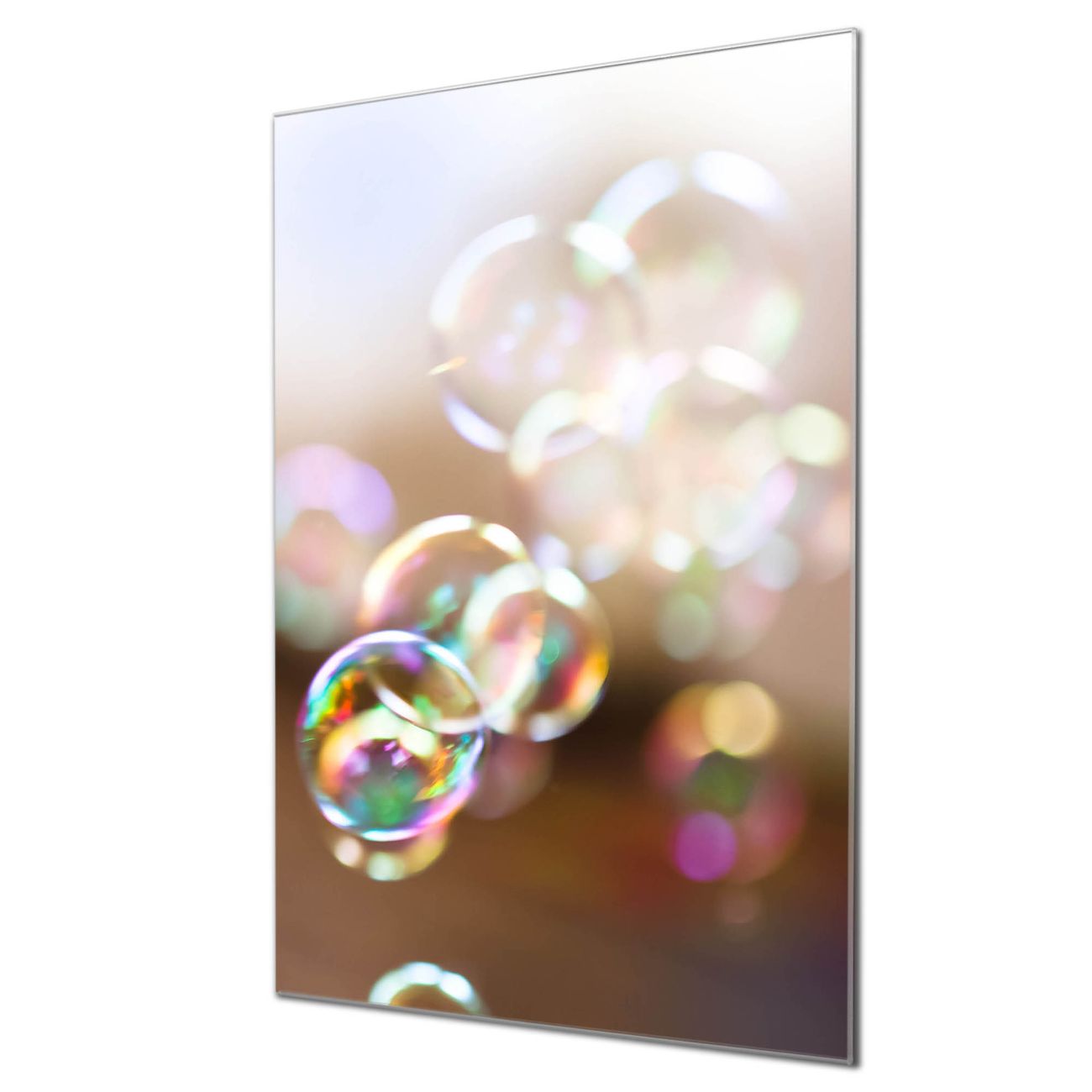 Brillantes Glasbild im Hochformat Seifenblasen