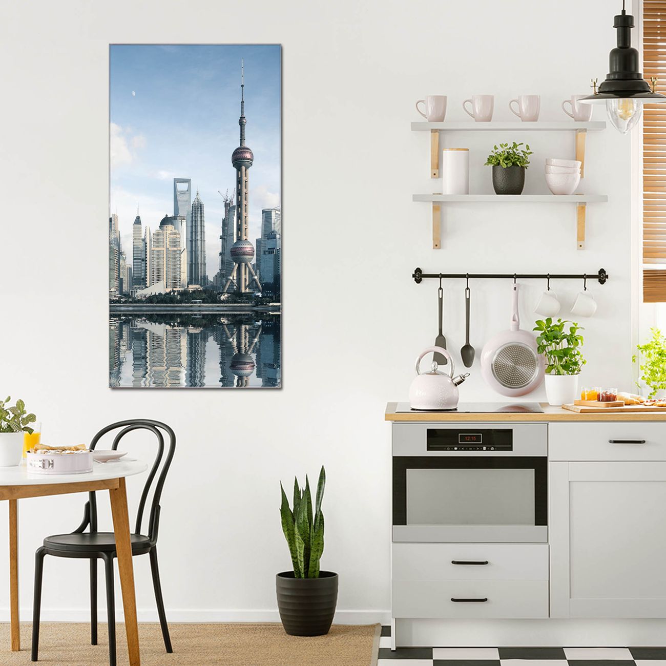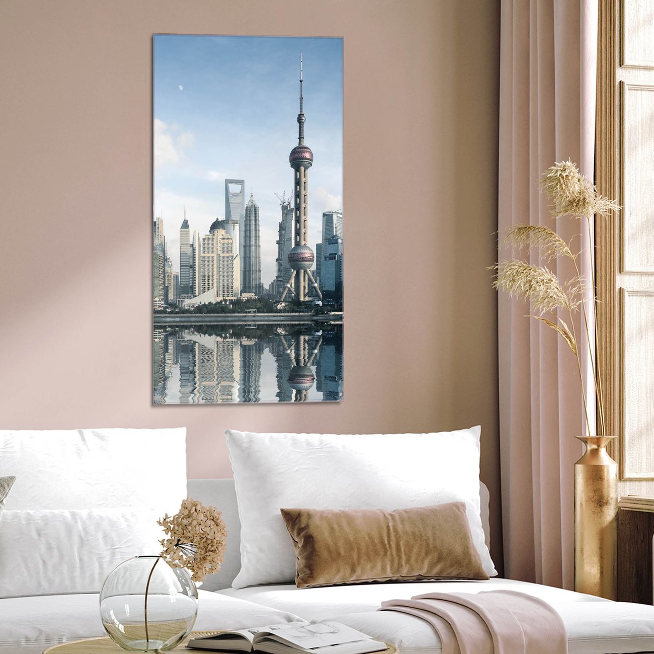 Unsere brillanten Glasbilder im Hochformat von banjado mit Motiv Shanghai sind der absolute Hingucker! Unsere Banjado Glasbilder sind sehr begehrt, weil sie top verarbeitet sind und sich ganz leicht montieren lassen. Schon mit wenigen Handgriffen hängen sie an der Wand und strahlen mit höchster brillianz. Durch die Ramenlose Herstellung schwebt das Echtglasbild förmlich an der Wand. Das Motiv erscheint besonders ausdrucksstark und hochwertig und ist hinter dem Echtglas geschützt.