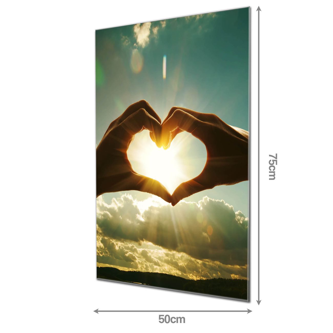 Brillantes Glasbild im Hochformat Sonne im Herzen