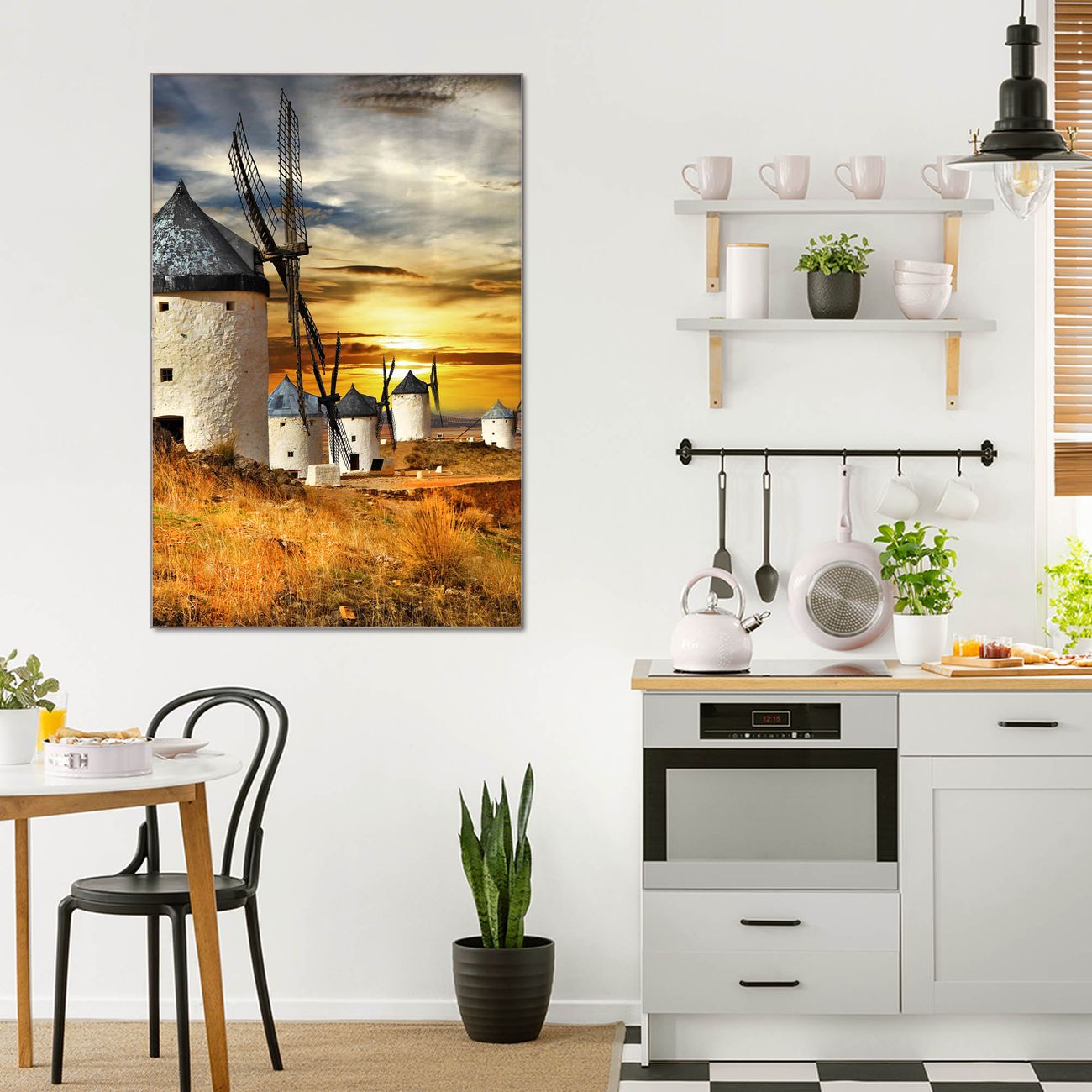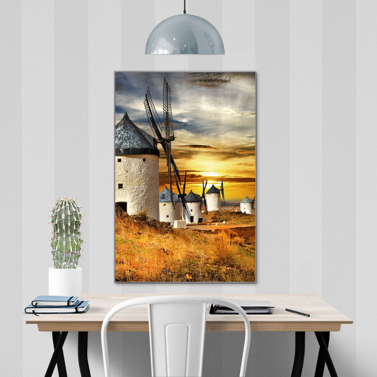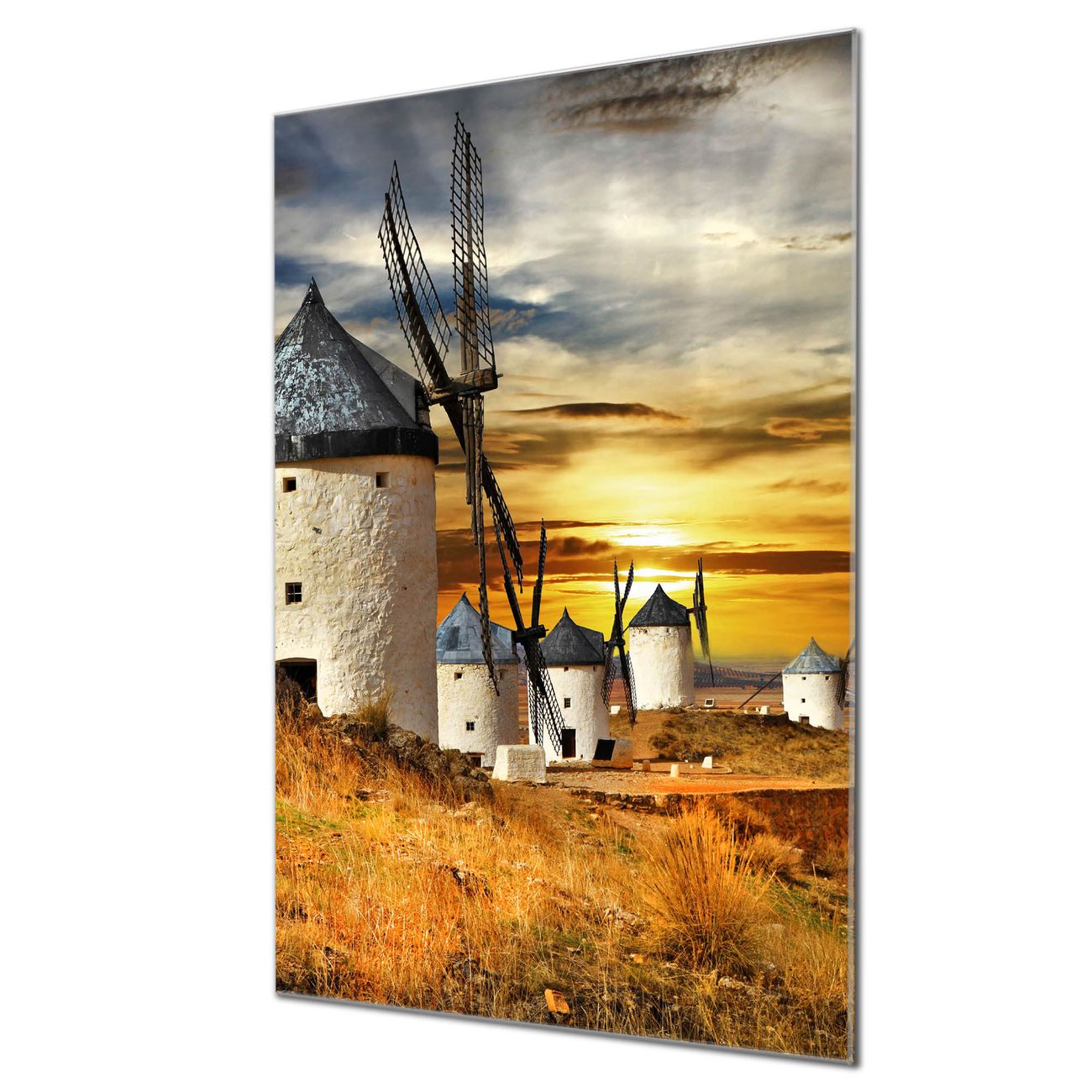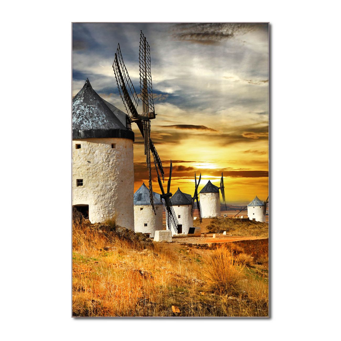 Brillantes Glasbild im Hochformat Spanische Windmühlen