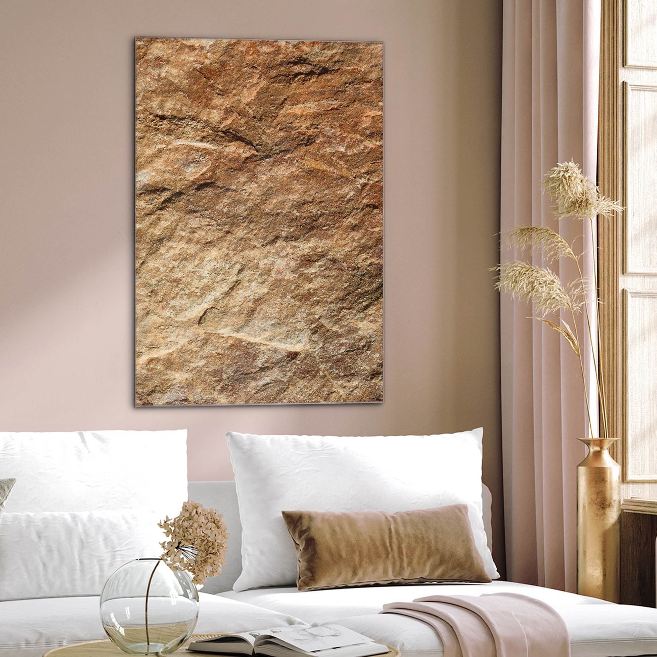 Brillantes Glasbild im Hochformat Steinstruktur