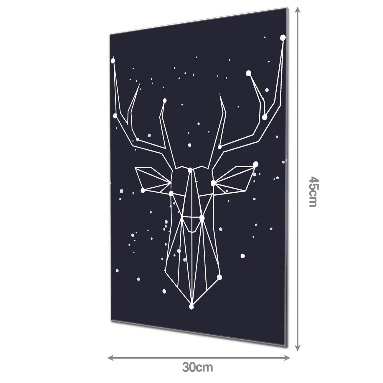 Unsere brillanten Glasbilder im Hochformat von banjado mit Motiv Sternbild Hirsch sind der absolute Hingucker! Unsere Banjado Glasbilder sind sehr begehrt, weil sie top verarbeitet sind und sich ganz leicht montieren lassen. Schon mit wenigen Handgriffen hängen sie an der Wand und strahlen mit höchster brillianz. Durch die Ramenlose Herstellung schwebt das Echtglasbild förmlich an der Wand. Das Motiv erscheint besonders ausdrucksstark und hochwertig und ist hinter dem Echtglas geschützt.