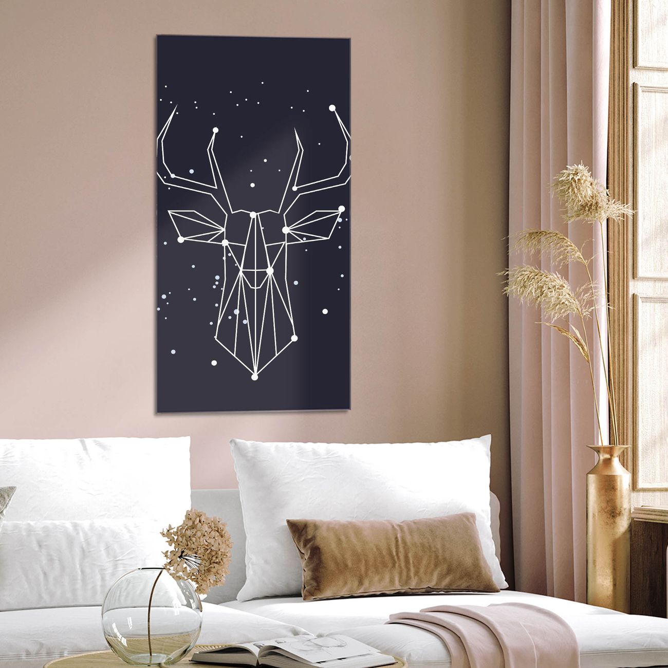 Unsere brillanten Glasbilder im Hochformat von banjado mit Motiv Sternbild Hirsch sind der absolute Hingucker! Unsere Banjado Glasbilder sind sehr begehrt, weil sie top verarbeitet sind und sich ganz leicht montieren lassen. Schon mit wenigen Handgriffen hängen sie an der Wand und strahlen mit höchster brillianz. Durch die Ramenlose Herstellung schwebt das Echtglasbild förmlich an der Wand. Das Motiv erscheint besonders ausdrucksstark und hochwertig und ist hinter dem Echtglas geschützt.
