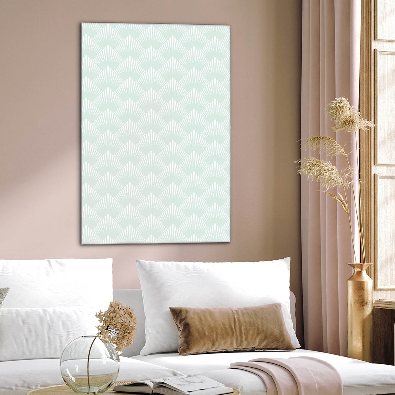 Brillantes Glasbild im Hochformat Strahlen Mint