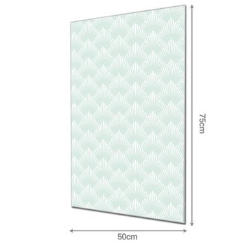 Material  4mm Sicherheitsglas mit Metallrückwand Eigenschaften  farbbrillant, kratzfest, rahmenlos Maße  50x75x0,6cm, 5,63 kg schwer Motiv  Nummer 11646 Strahlen Mint
