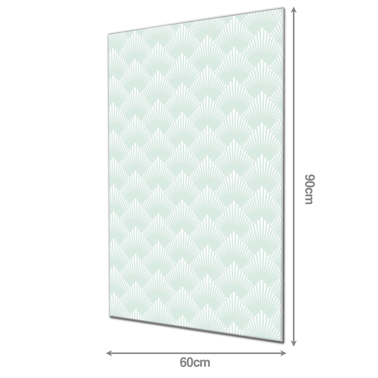 Material  4mm Sicherheitsglas mit Metallrückwand Eigenschaften  farbbrillant, kratzfest, rahmenlos Maße  60x90x0,6cm, 8,10 kg schwer Motiv  Nummer 11646 Strahlen Mint