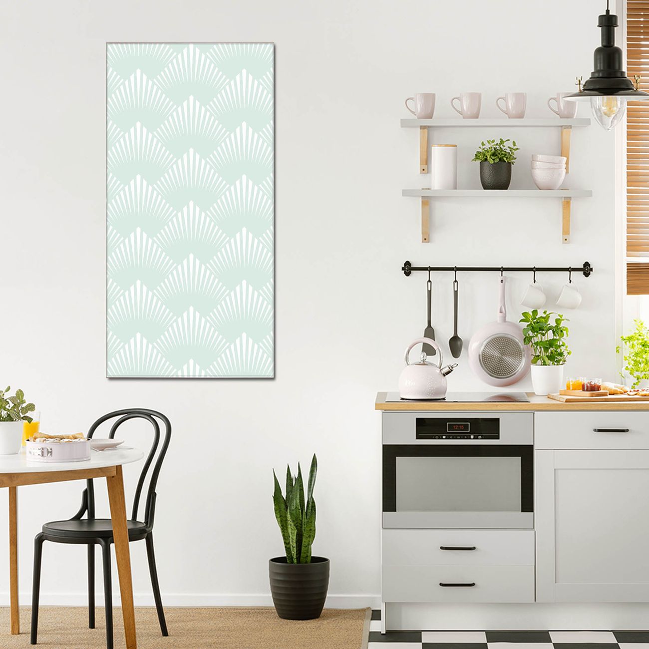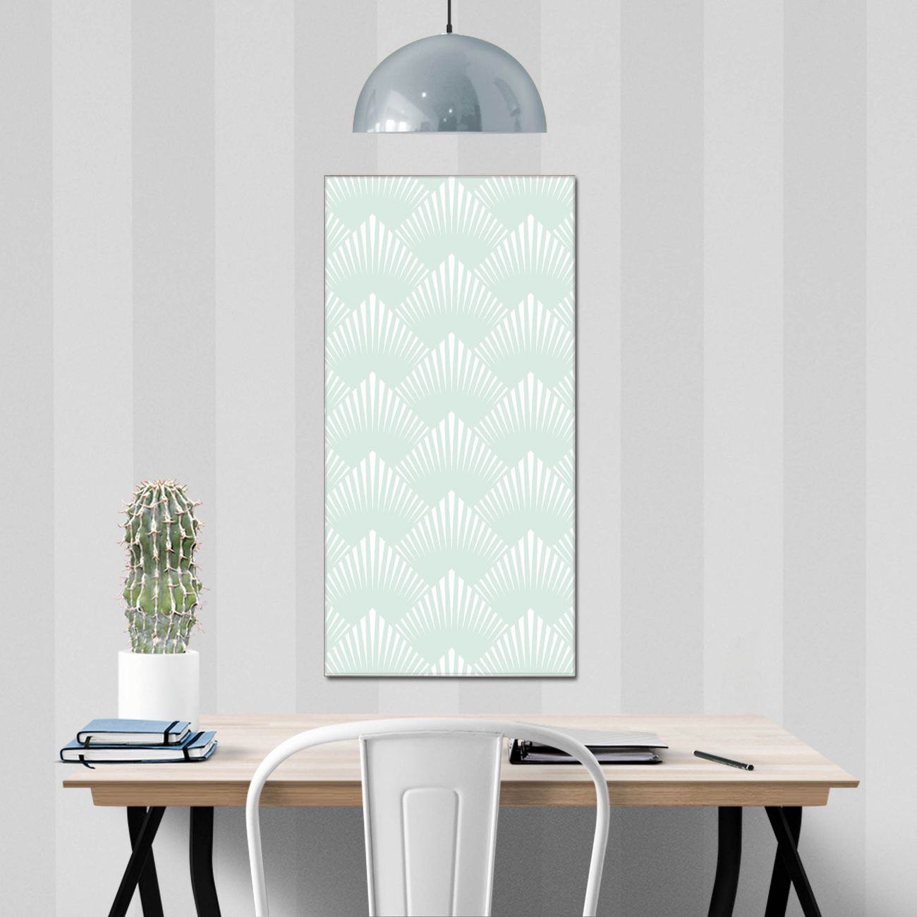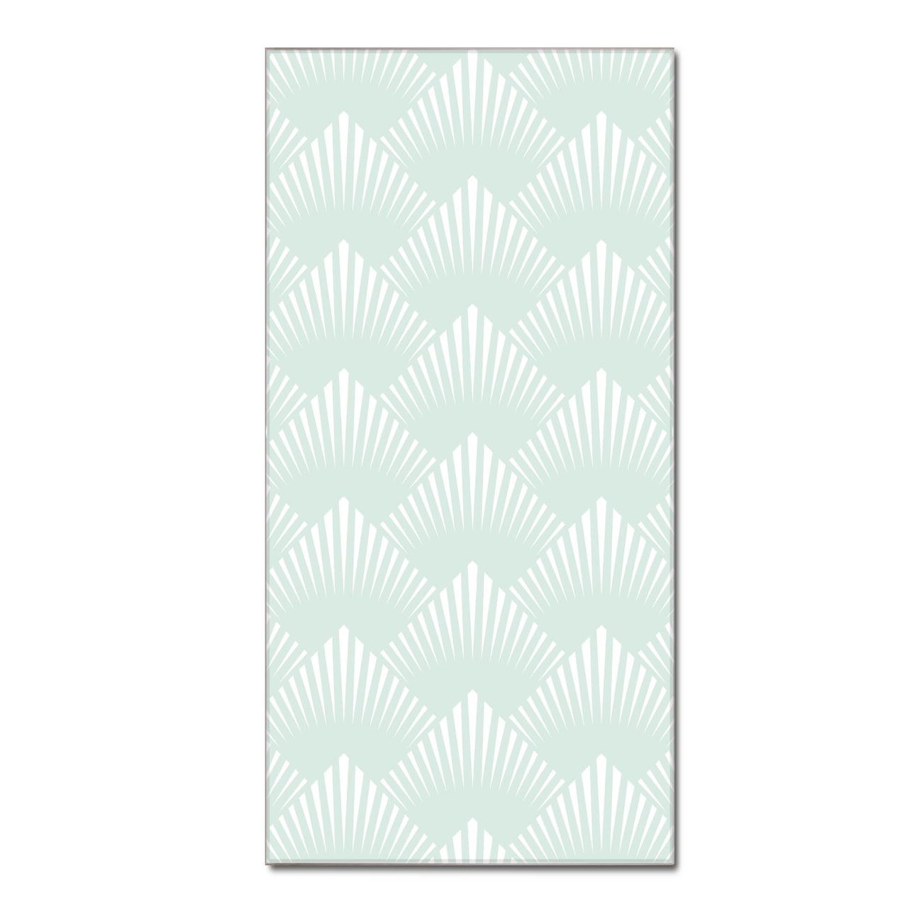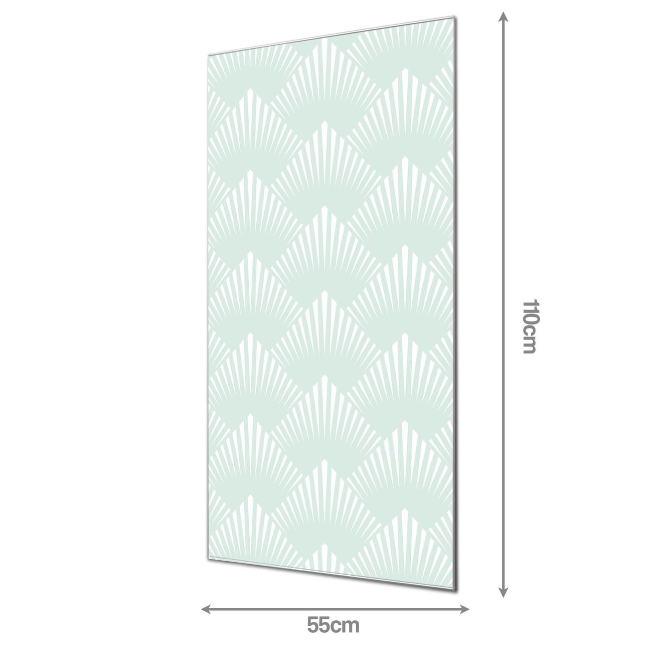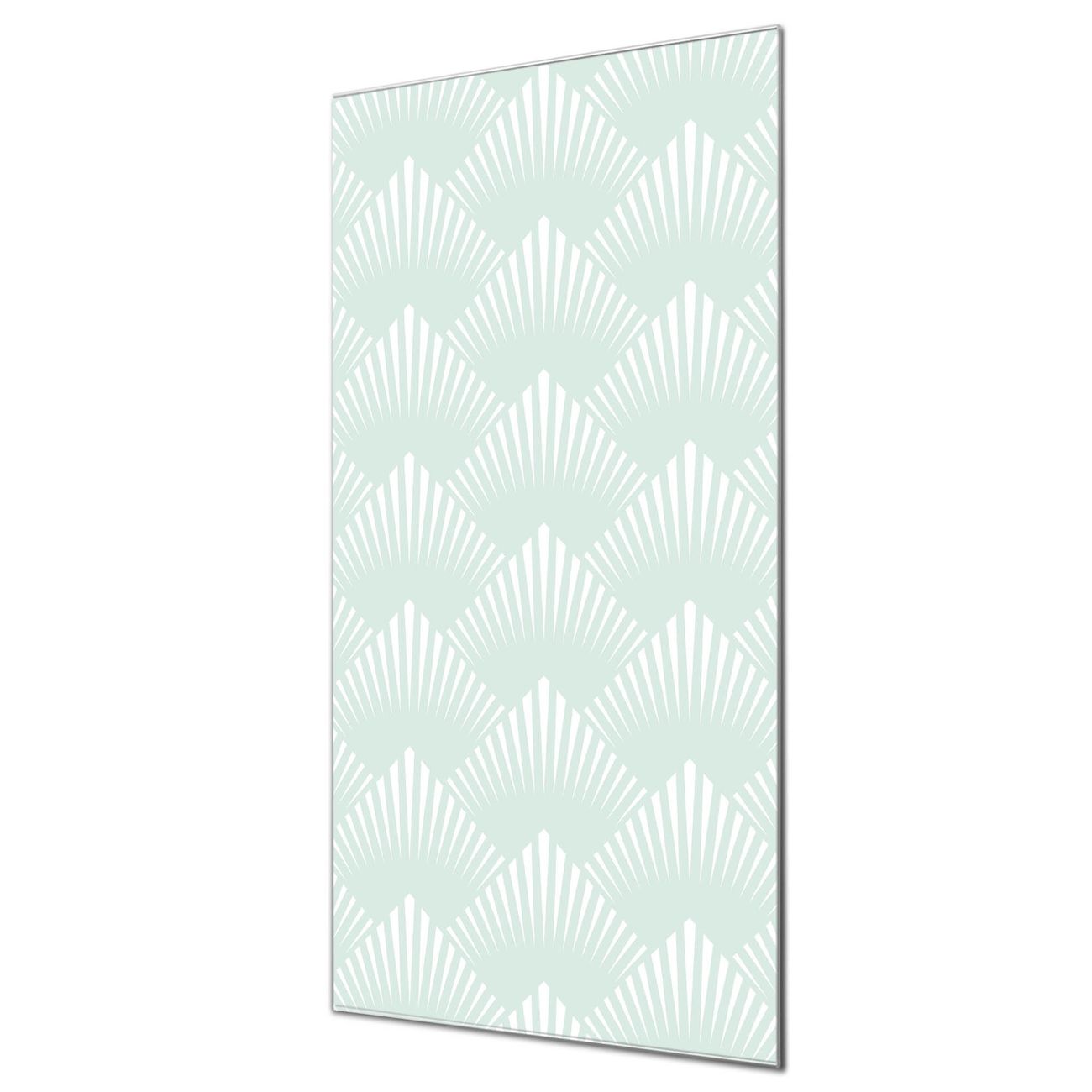 Material  4mm Sicherheitsglas mit Metallrückwand Eigenschaften  farbbrillant, kratzfest, rahmenlos Maße  55x110x0,6cm, 9,08 kg schwer Motiv  Nummer 11646 Strahlen Mint