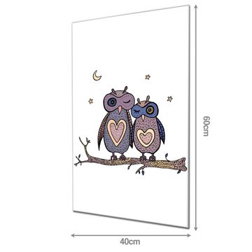 Brillantes Glasbild im Hochformat Verliebte Eulen