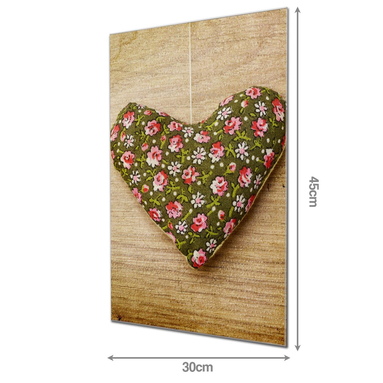 Material  4mm Sicherheitsglas mit Metallrückwand Eigenschaften  farbbrillant, kratzfest, rahmenlos Maße  30x45x0,6cm, 2,03 kg schwer Motiv  Nummer 12073 Weiches Herz