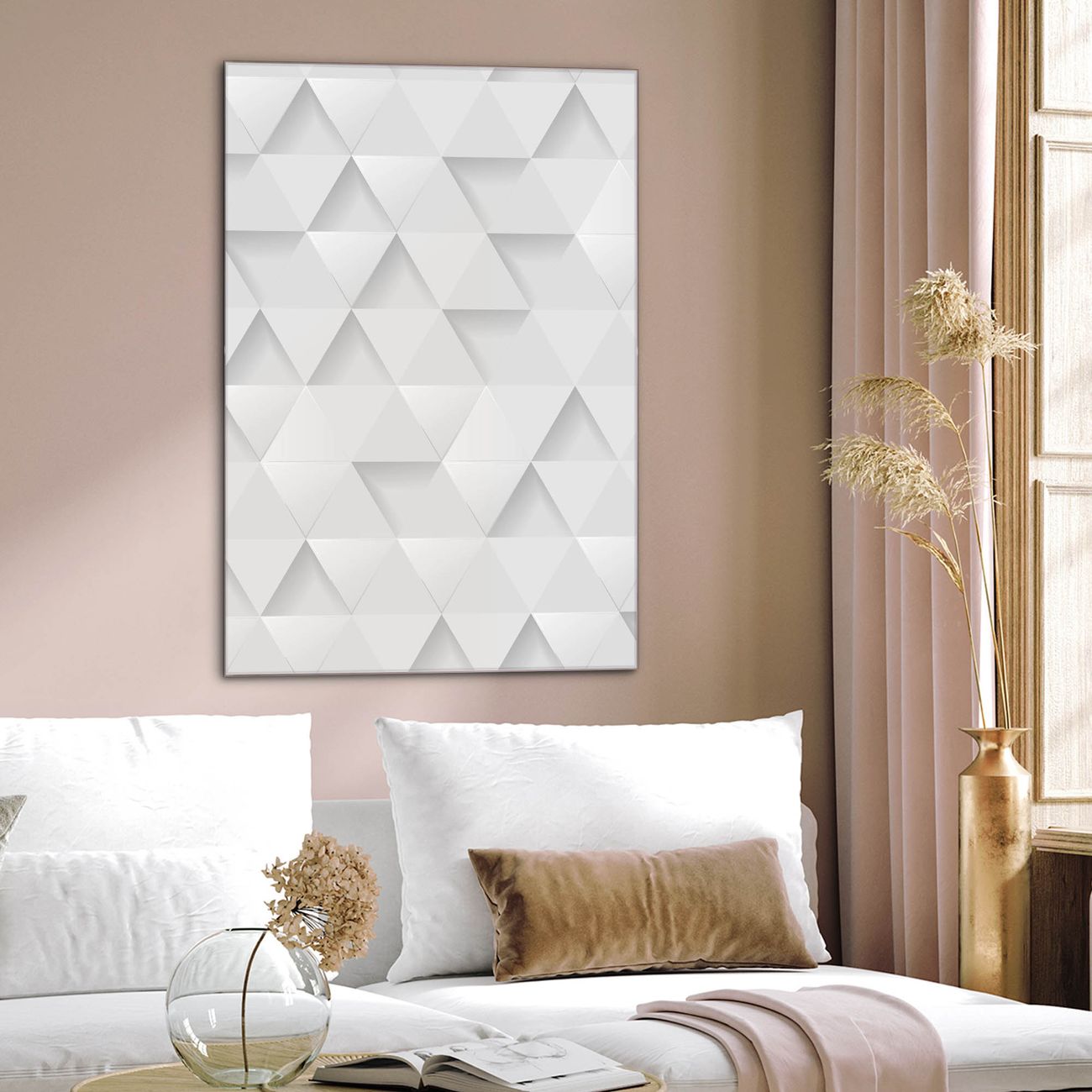 Brillantes Glasbild im Hochformat Weisse Dreiecke