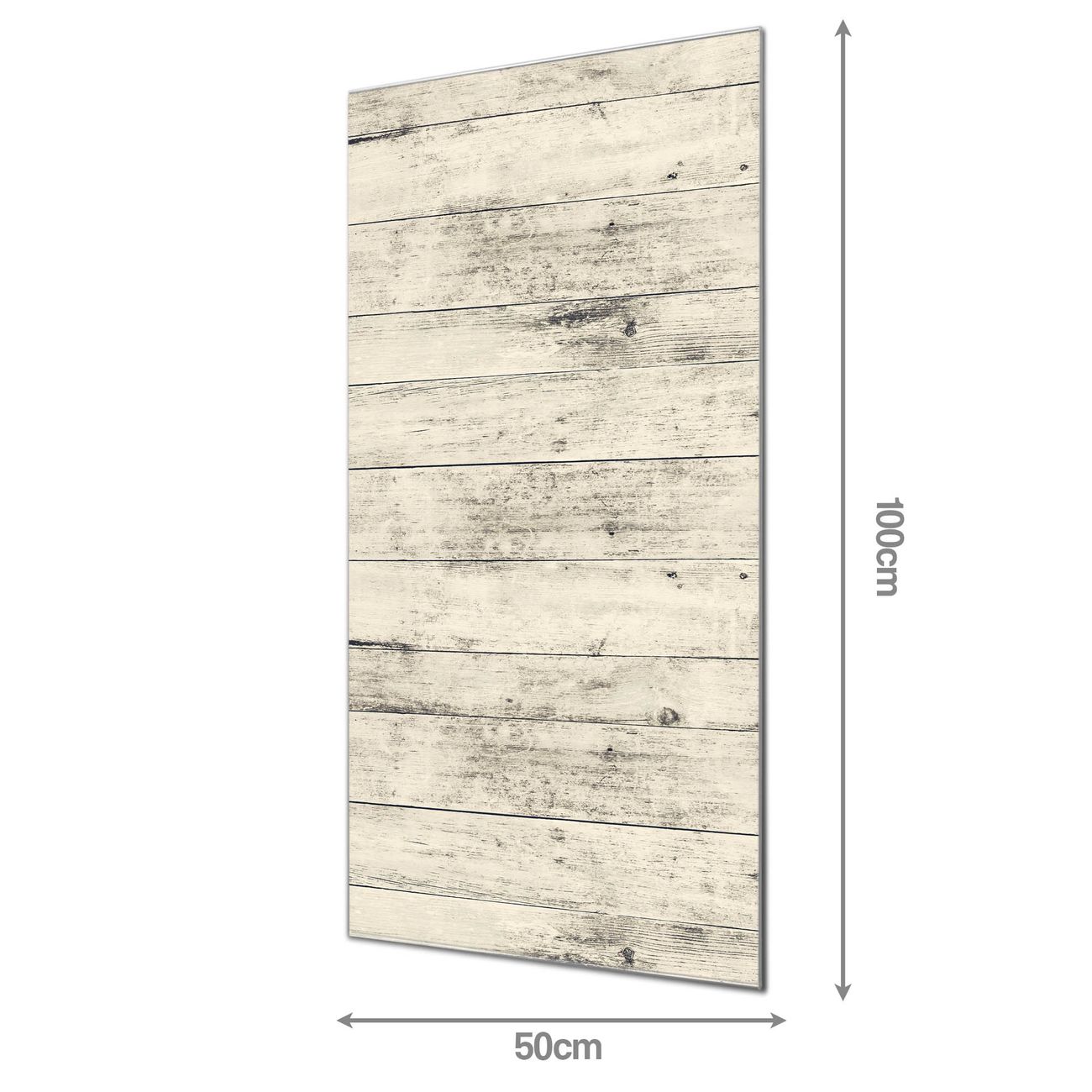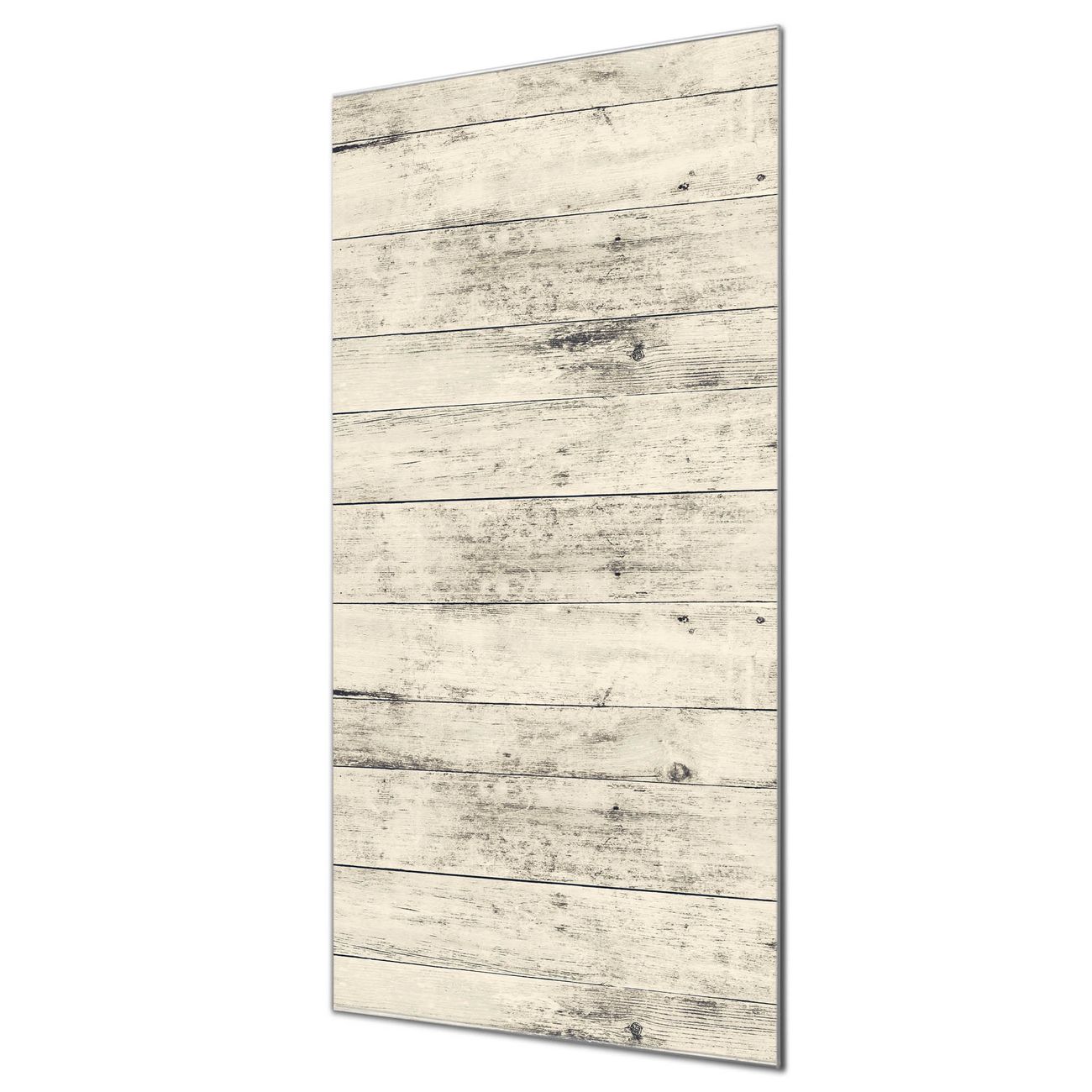 Material  4mm Sicherheitsglas mit Metallrückwand Eigenschaften  farbbrillant, kratzfest, rahmenlos Maße  50x100x0,6cm, 7,50 kg schwer Motiv  Nummer 11933 Weiße Planken H