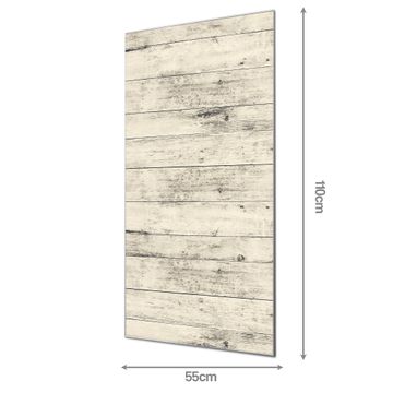 Material  4mm Sicherheitsglas mit Metallrückwand Eigenschaften  farbbrillant, kratzfest, rahmenlos Maße  55x110x0,6cm, 9,08 kg schwer Motiv  Nummer 11933 Weiße Planken H