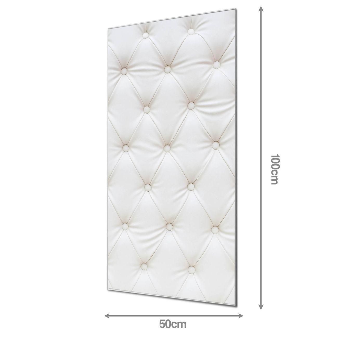 Material  4mm Sicherheitsglas mit Metallrückwand Eigenschaften  farbbrillant, kratzfest, rahmenlos Maße  50x100x0,6cm, 7,50 kg schwer Motiv  Nummer 11413 Weißes Polster