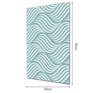 Material  4mm Sicherheitsglas mit Metallrückwand Eigenschaften  farbbrillant, kratzfest, rahmenlos Maße  60x90x0,6cm, 8,10 kg schwer Motiv  Nummer 11694 Wellen Lindgrün