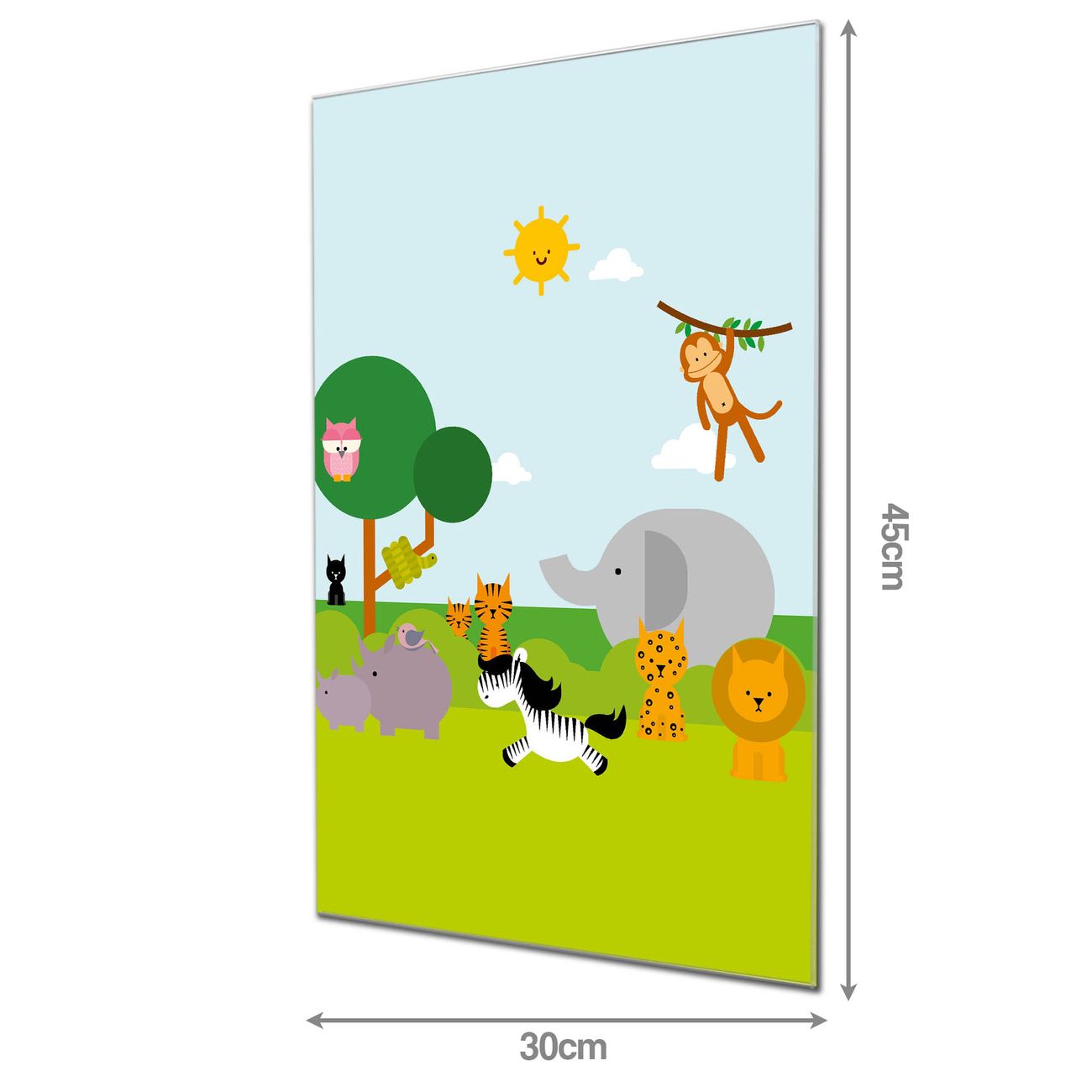 Material  4mm Sicherheitsglas mit Metallrückwand Eigenschaften  farbbrillant, kratzfest, rahmenlos Maße  30x45x0,6cm, 2,03 kg schwer Motiv  Nummer 11970 Wilde Tiere