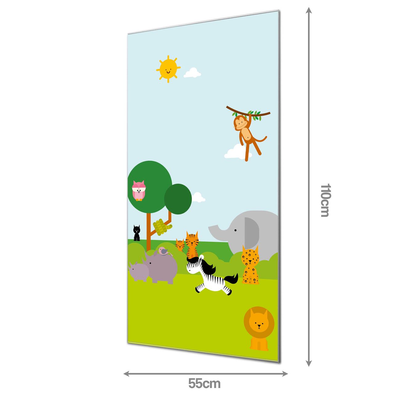 Material  4mm Sicherheitsglas mit Metallrückwand Eigenschaften  farbbrillant, kratzfest, rahmenlos Maße  55x110x0,6cm, 9,08 kg schwer Motiv  Nummer 11970 Wilde Tiere