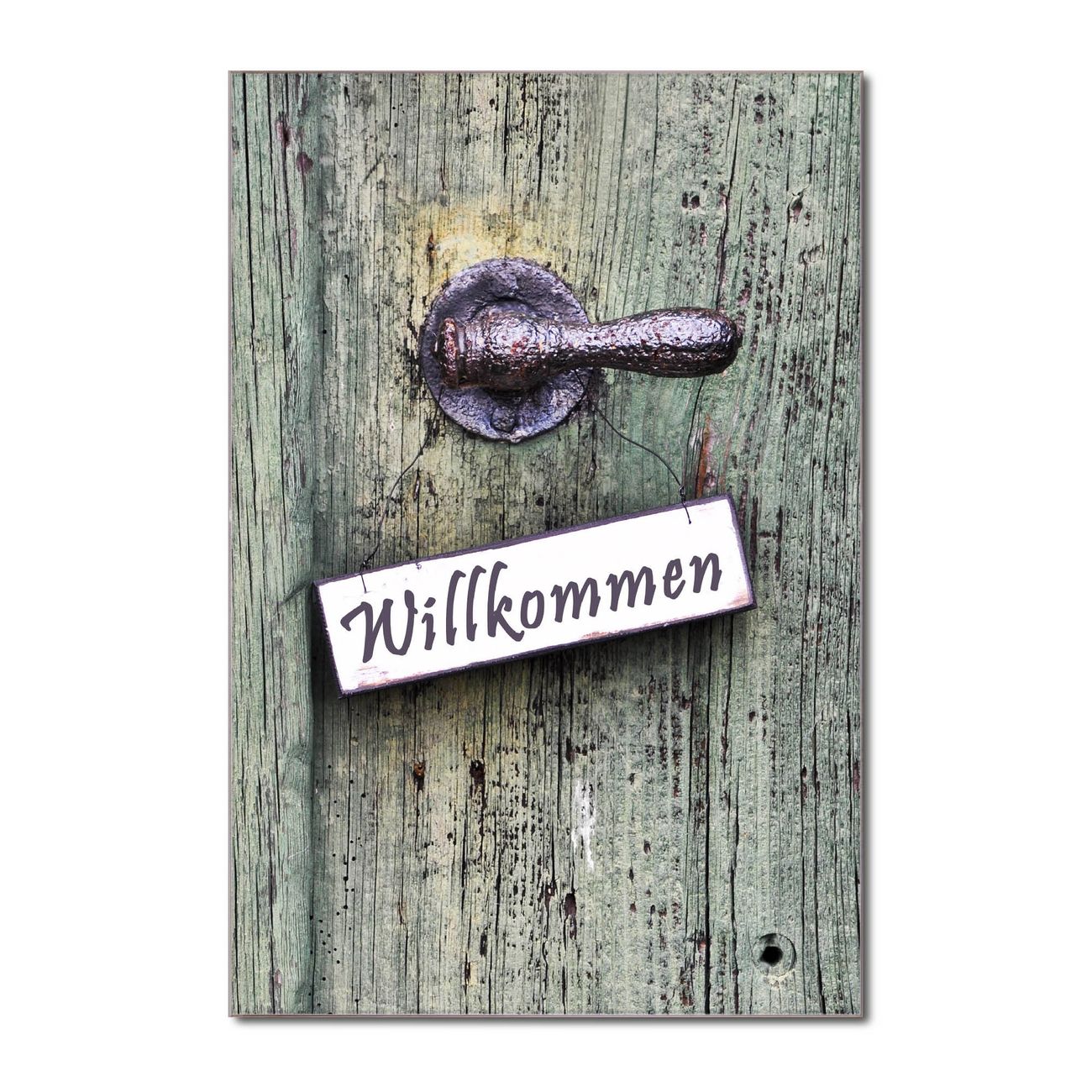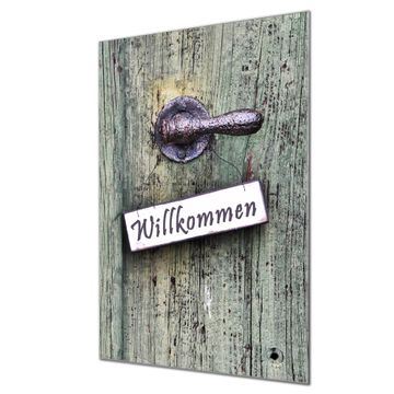 Brillantes Glasbild im Hochformat Willkommen