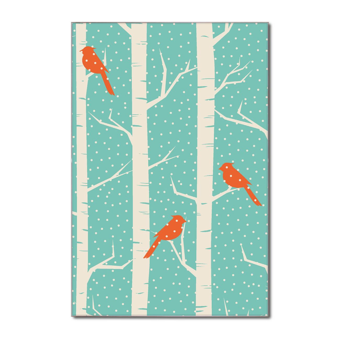 Brillantes Glasbild im Hochformat Wintervögel