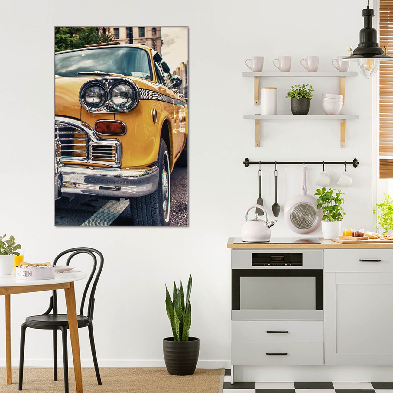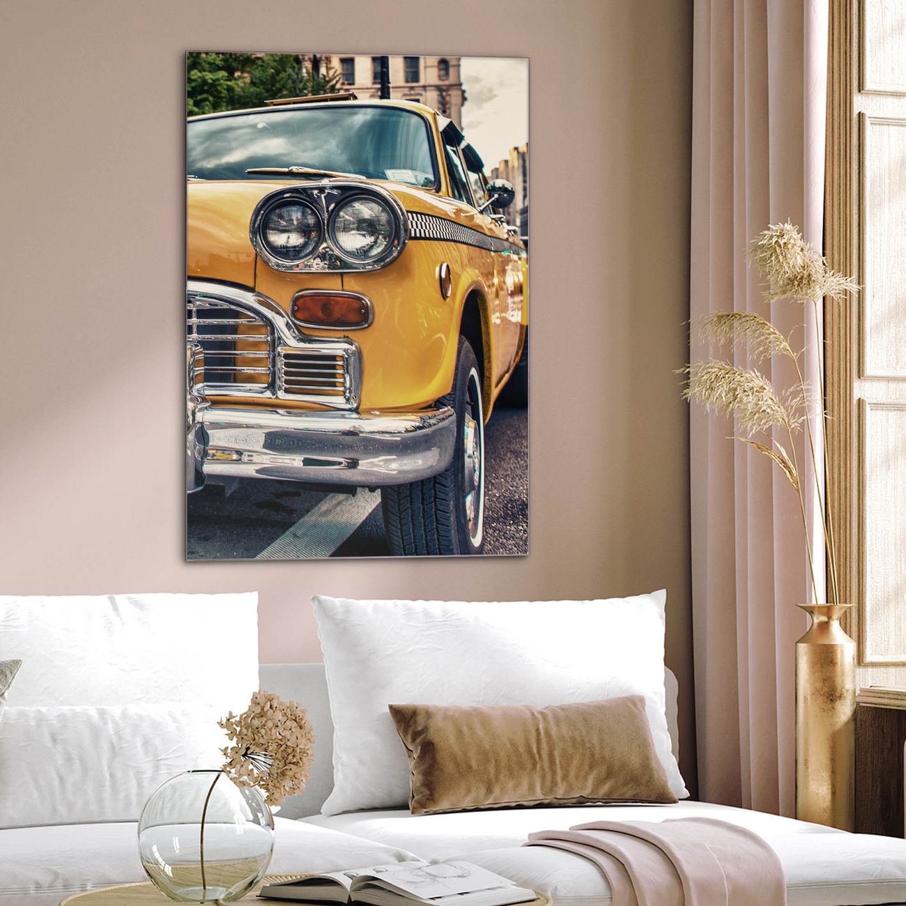 Unsere brillanten Glasbilder im Hochformat von banjado mit Motiv Yellow Cab sind der absolute Hingucker! Unsere Banjado Glasbilder sind sehr begehrt, weil sie top verarbeitet sind und sich ganz leicht montieren lassen. Schon mit wenigen Handgriffen hängen sie an der Wand und strahlen mit höchster brillianz. Durch die Ramenlose Herstellung schwebt das Echtglasbild förmlich an der Wand. Das Motiv erscheint besonders ausdrucksstark und hochwertig und ist hinter dem Echtglas geschützt.