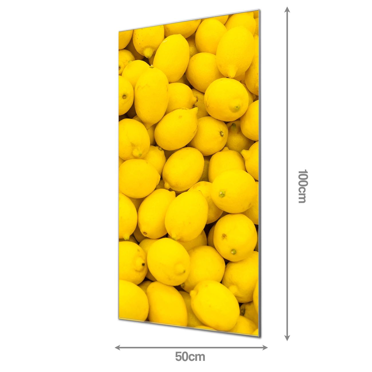 Material  4mm Sicherheitsglas mit Metallrückwand Eigenschaften  farbbrillant, kratzfest, rahmenlos Maße  50x100x0,6cm, 7,50 kg schwer Motiv  Nummer 11662 Zitronen