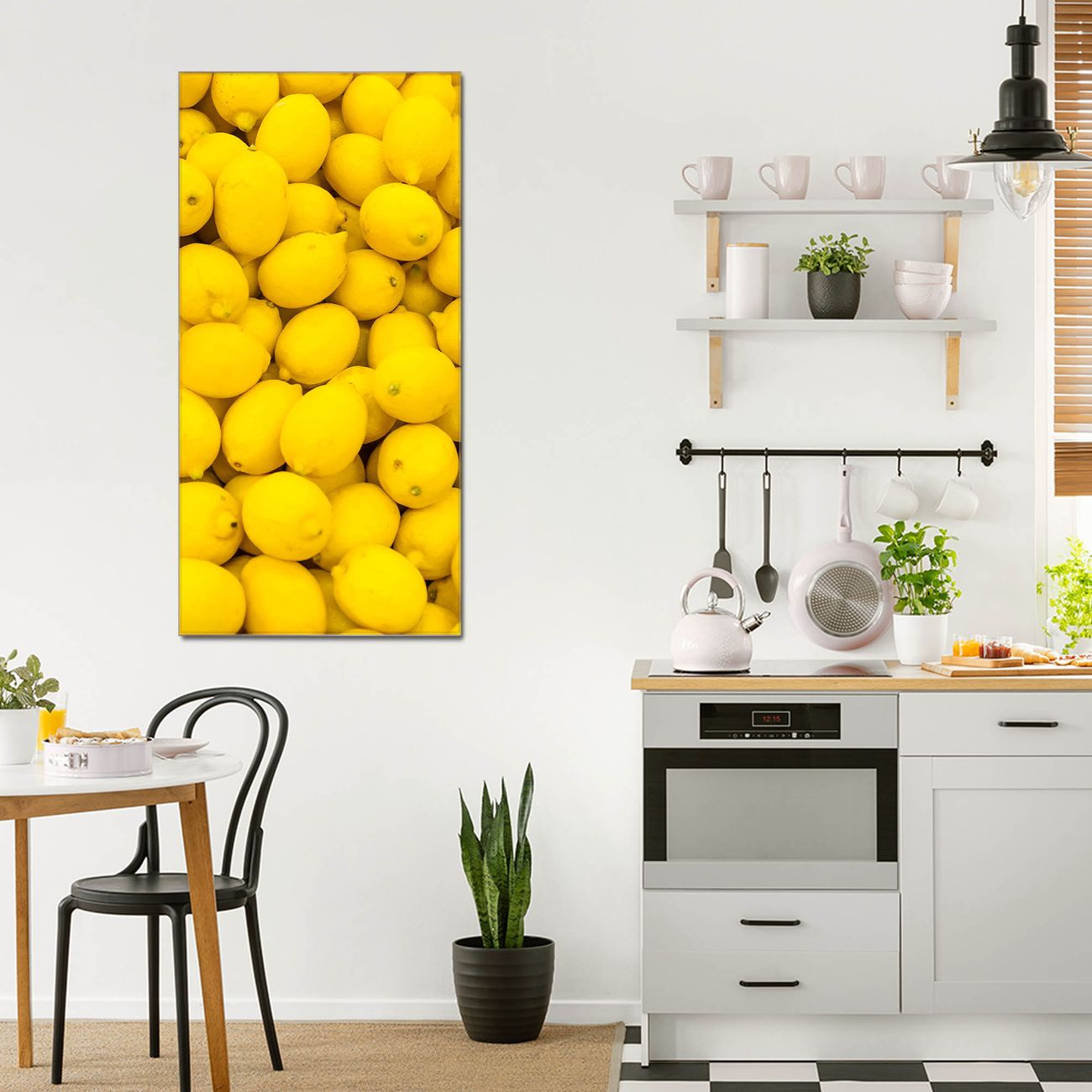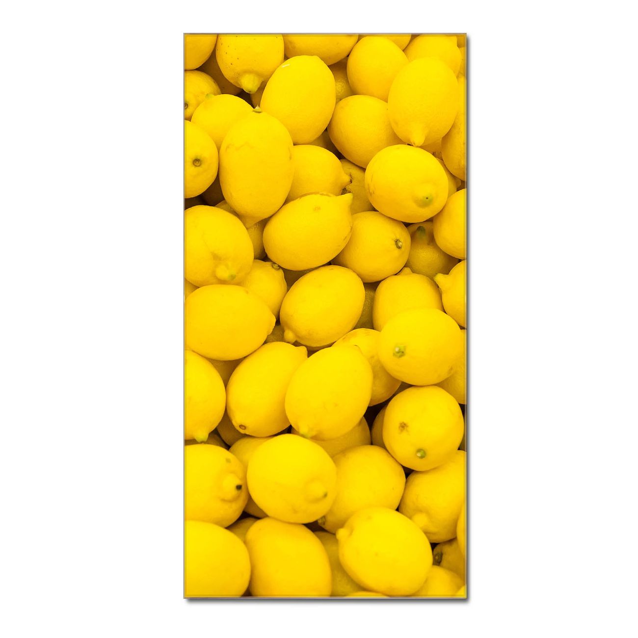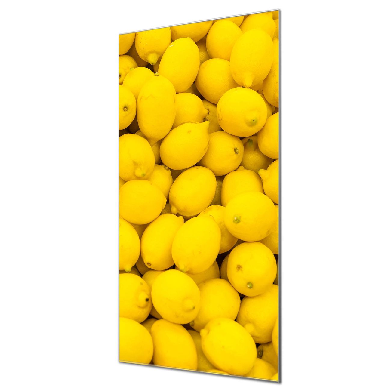 Material  4mm Sicherheitsglas mit Metallrückwand Eigenschaften  farbbrillant, kratzfest, rahmenlos Maße  55x110x0,6cm, 9,08 kg schwer Motiv  Nummer 11662 Zitronen