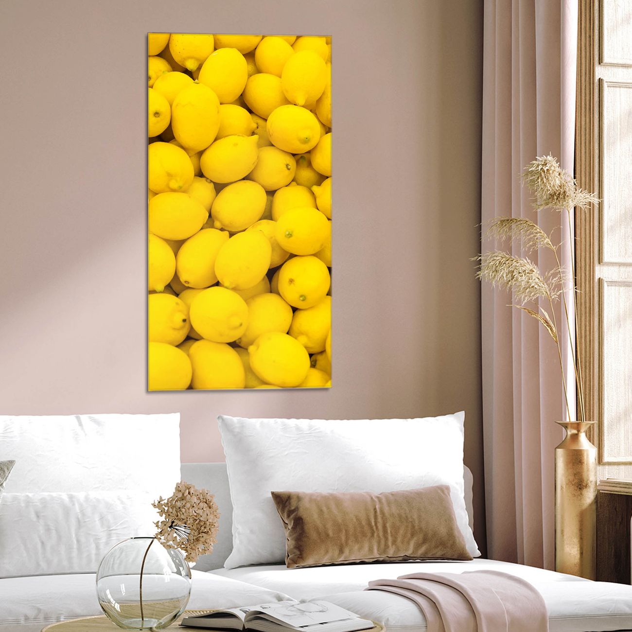 Unsere brillanten Glasbilder im Hochformat von banjado mit Motiv Zitronen sind der absolute Hingucker! Unsere Banjado Glasbilder sind sehr begehrt, weil sie top verarbeitet sind und sich ganz leicht montieren lassen. Schon mit wenigen Handgriffen hängen sie an der Wand und strahlen mit höchster brillianz. Durch die Ramenlose Herstellung schwebt das Echtglasbild förmlich an der Wand. Das Motiv erscheint besonders ausdrucksstark, hochwertig und ist hinter dem Echtglas geschützt.