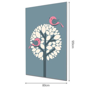 Material  4mm Sicherheitsglas mit Metallrückwand Eigenschaften  farbbrillant, kratzfest, rahmenlos Maße  80x120x0,6cm, 14,40 kg schwer Motiv  Nummer 11853 Zwei Rosa Vögel