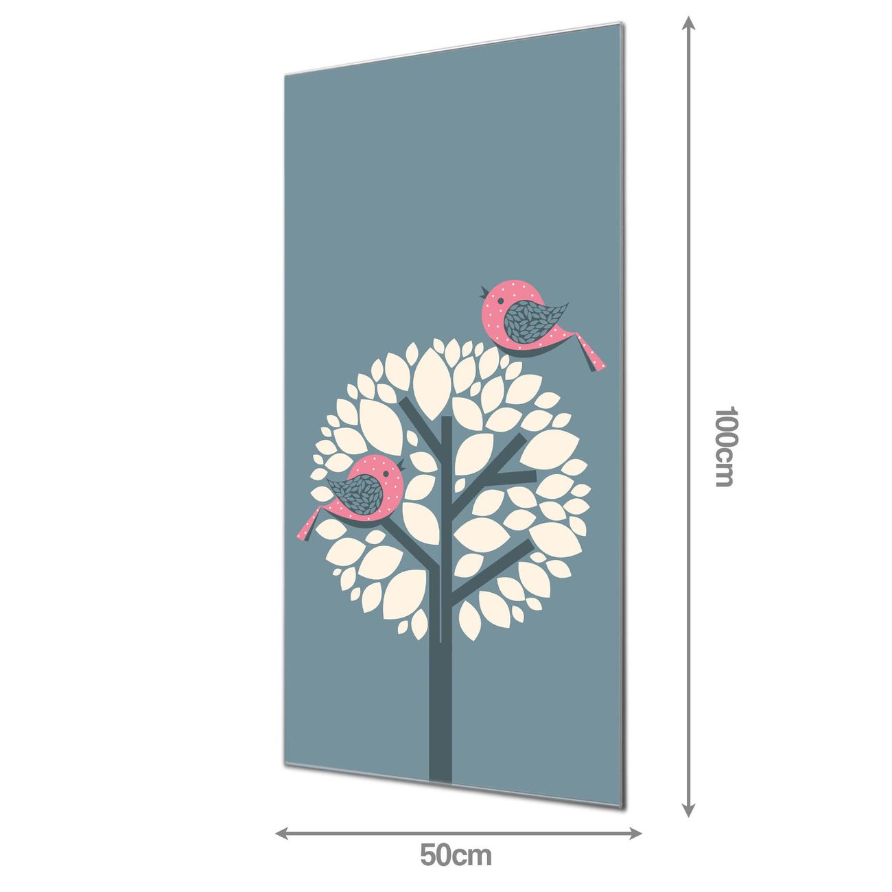 Material  4mm Sicherheitsglas mit Metallrückwand Eigenschaften  farbbrillant, kratzfest, rahmenlos Maße  50x100x0,6cm, 7,50 kg schwer Motiv  Nummer 11853 Zwei Rosa Vögel