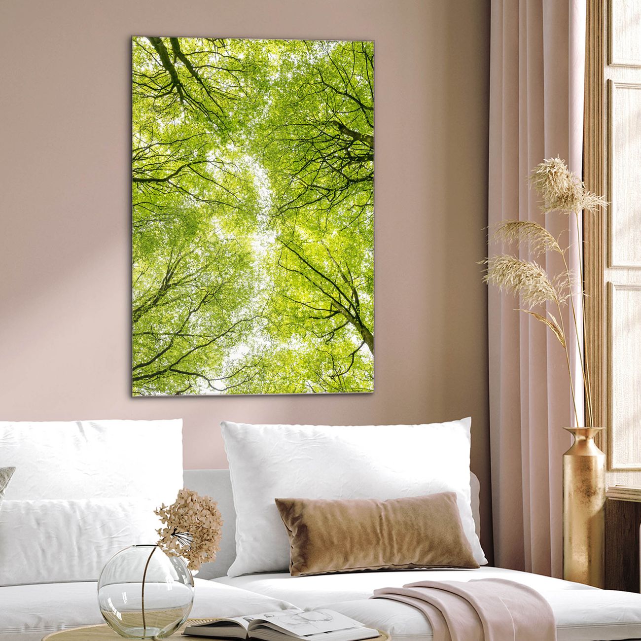 Brillantes Glasbild im Hochformat