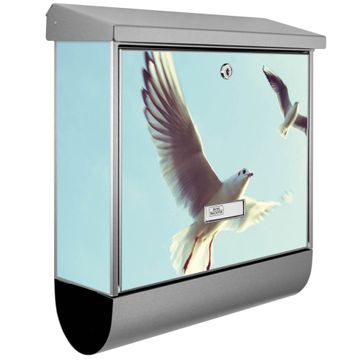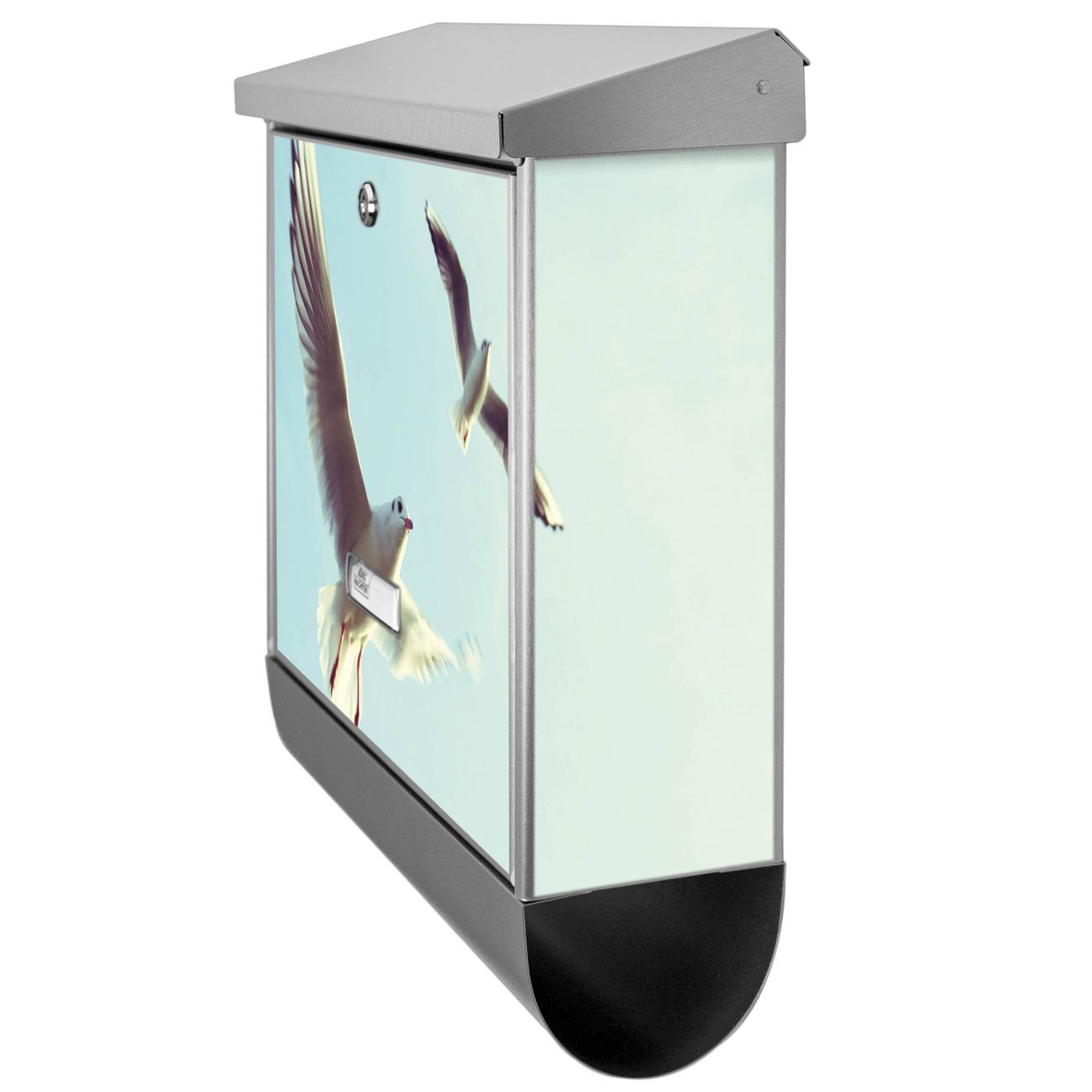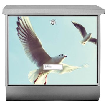 Der BURG-WÄCHTER Edelstahl Briefkasten mit Motiv 2 Möwen und Zeitungsrolle bietet Ihnen mit seinem Fassungsvermögen genügend Platz auch für große A4 Sendungen und Zeitschriften. Das integrierte Regendach schützt Ihre Post vor dem Eindringen von Regen.