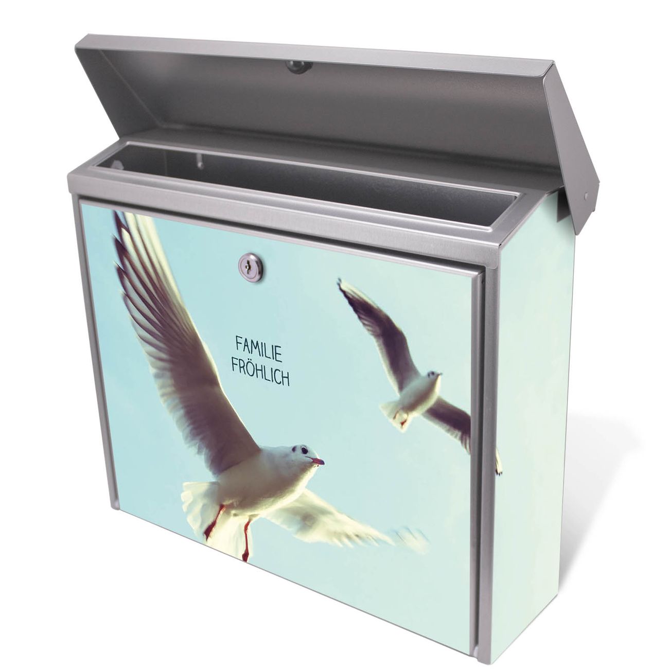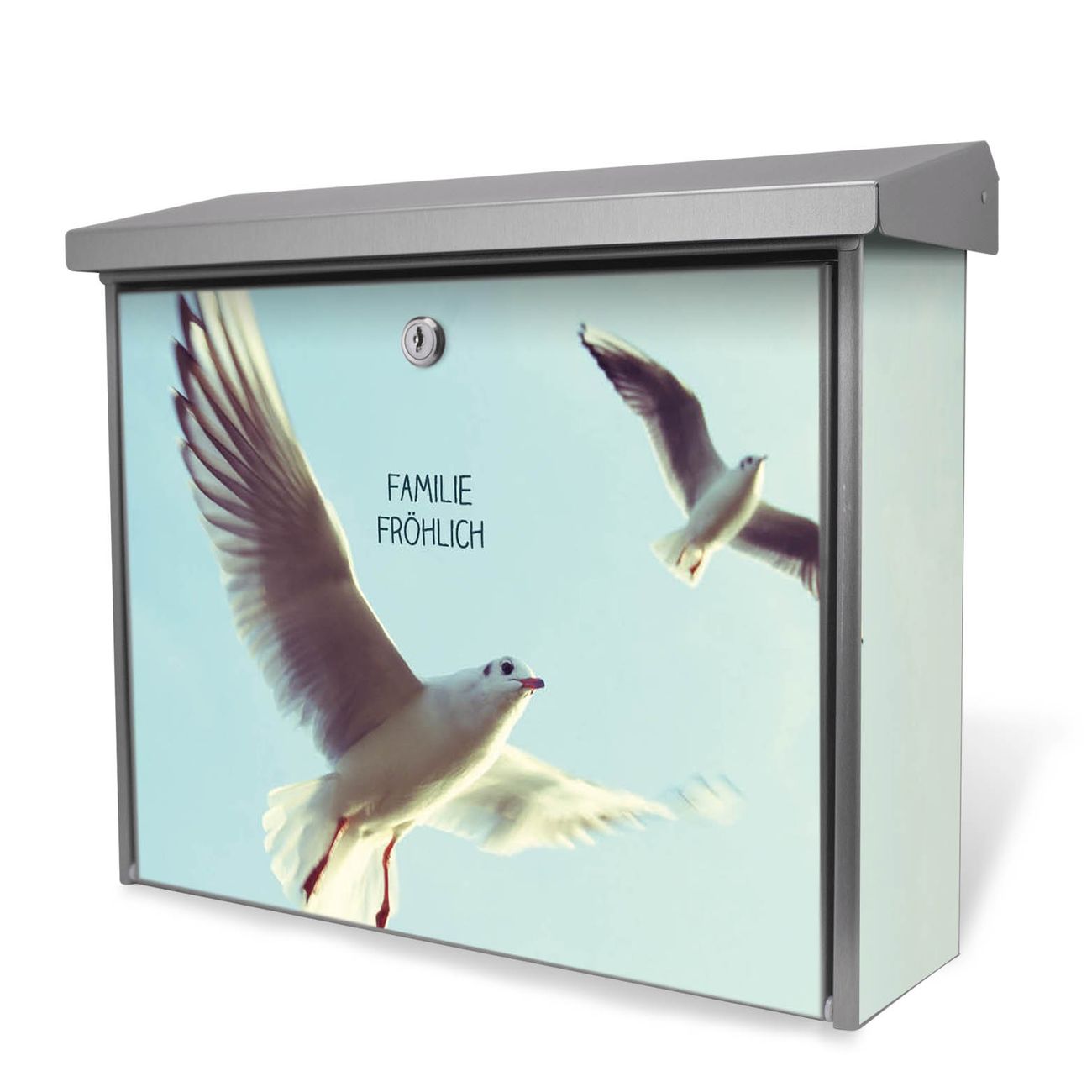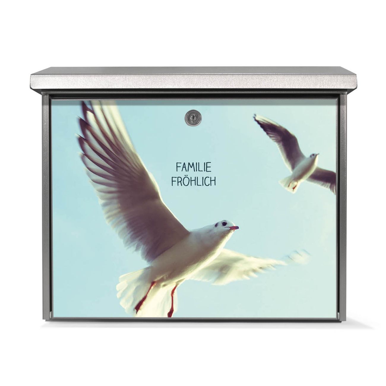 Der Postkasten mit 2 Möwen Motiv hat ein sehr ansprechendes und zeitloses Design. Unsere Motivpalette hält jede Menge Varianten bereit, ob klassisch, modern, verspielt oder witzig - für jeden haben wir das passende Motiv parat. Der Briefkasten ist das Aushängeschild Ihres Hauses.