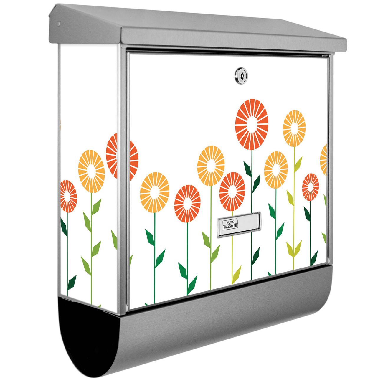 Der Abstrakte Margeriten Motivbriefkasten hat ein sehr ansprechendes und zeitloses Design. Unsere Motivpalette hält jede Menge Varianten bereit, ob klassisch, modern, verspielt oder witzig - für jeden haben wir das passende Motiv parat. Der Briefkasten mit Zeitungsfach ist Ihr Aushängeschild, heben Sie Sich ab ohne auf Funktionalität zu verzichten.
