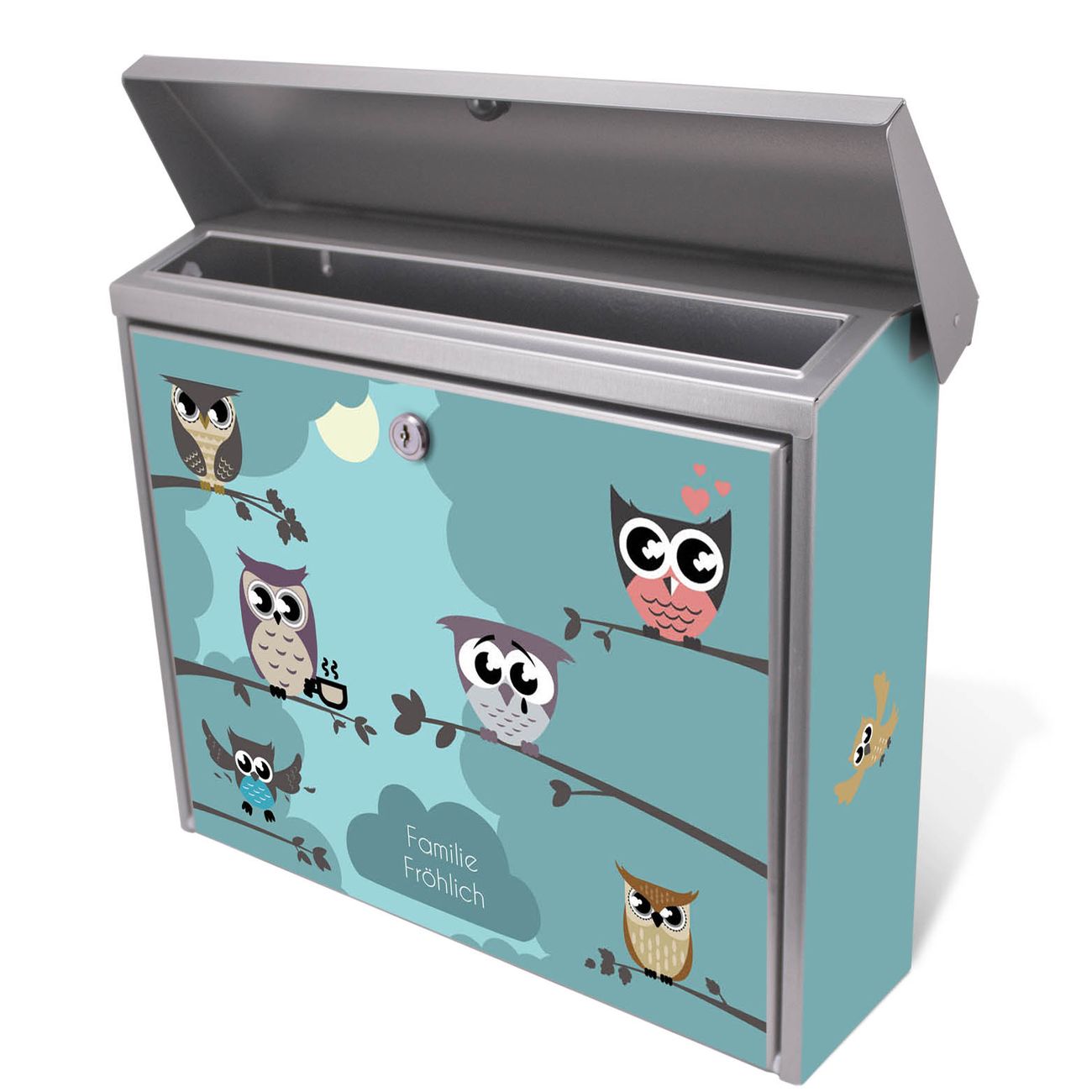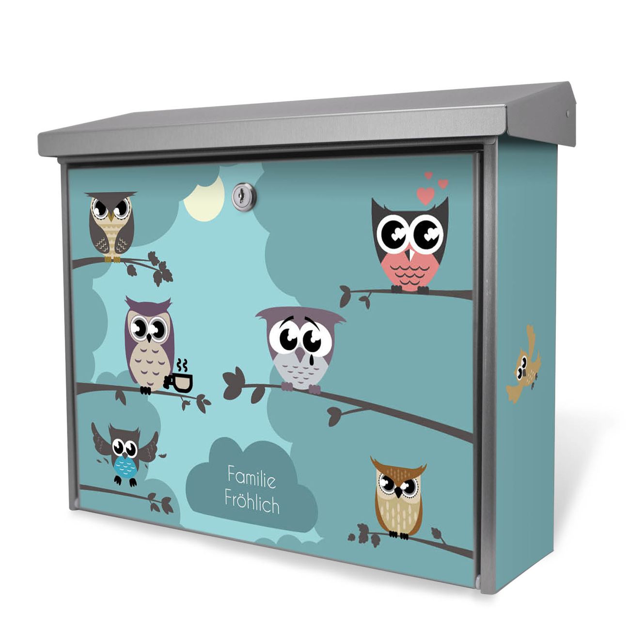 Der Postkasten mit Acht Eulen Motiv hat ein sehr ansprechendes und zeitloses Design. Unsere Motivpalette hält jede Menge Varianten bereit, ob klassisch, modern, verspielt oder witzig - für jeden haben wir das passende Motiv parat. Der Briefkasten ist das Aushängeschild Ihres Hauses.
