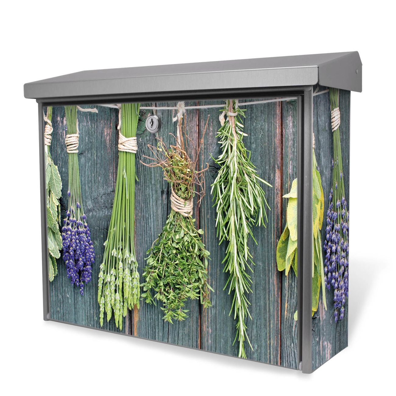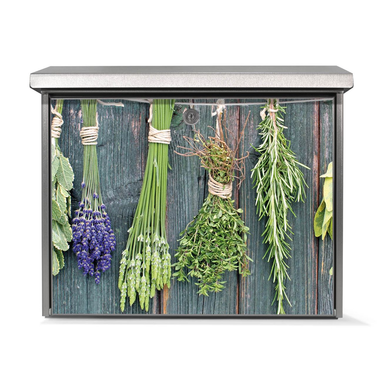 Der Postkasten mit Acht Kräuter Motiv hat ein sehr ansprechendes und zeitloses Design. Unsere Motivpalette hält jede Menge Varianten bereit, ob klassisch, modern, verspielt oder witzig - für jeden haben wir das passende Motiv parat. Der Briefkasten ist das Aushängeschild Ihres Hauses.