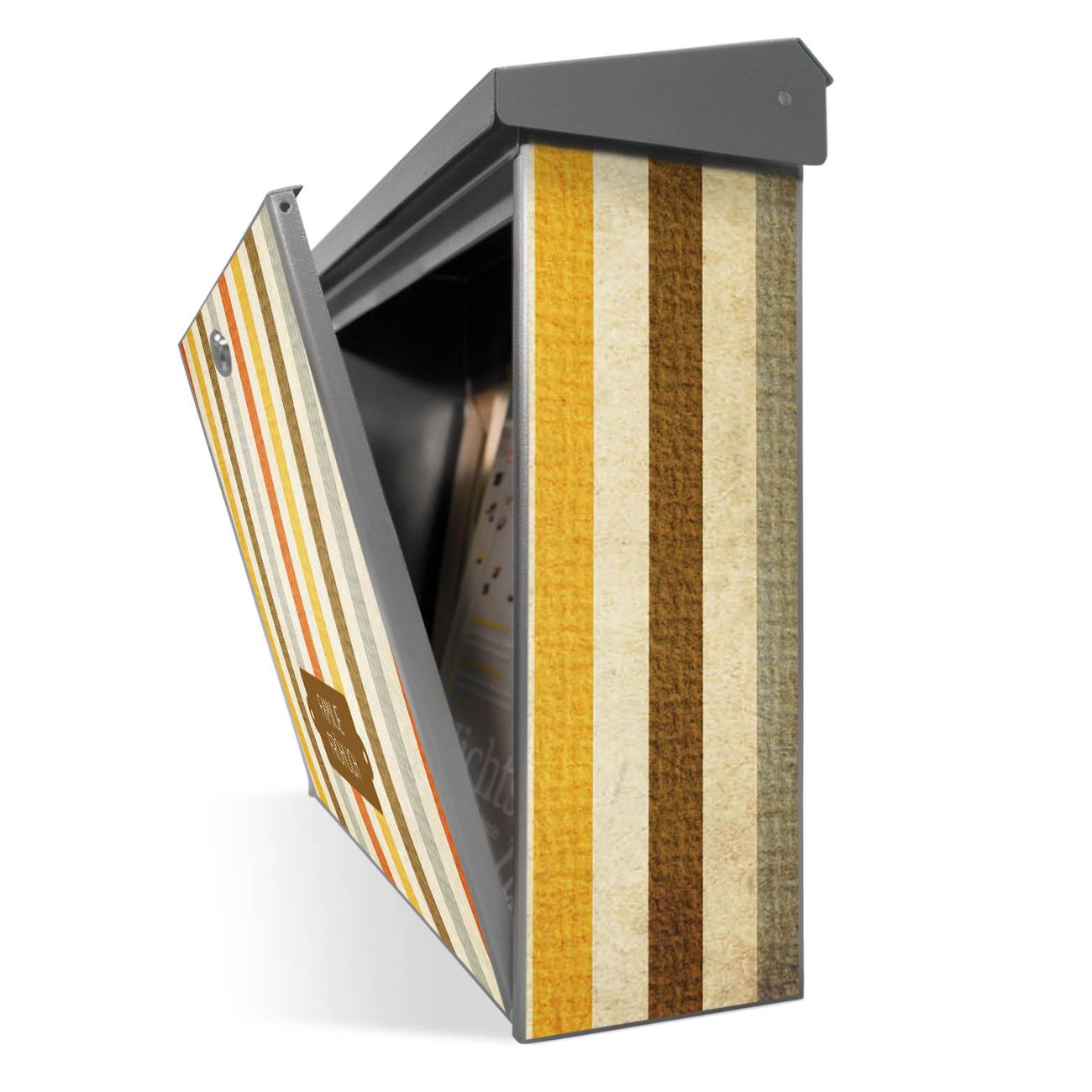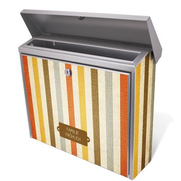Der Postkasten mit Alte Streifen Motiv hat ein sehr ansprechendes und zeitloses Design. Unsere Motivpalette hält jede Menge Varianten bereit, ob klassisch, modern, verspielt oder witzig - für jeden haben wir das passende Motiv parat. Der Briefkasten ist das Aushängeschild Ihres Hauses.