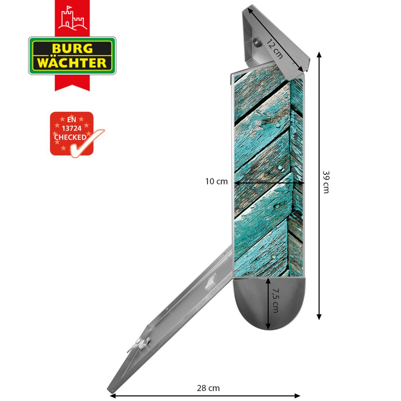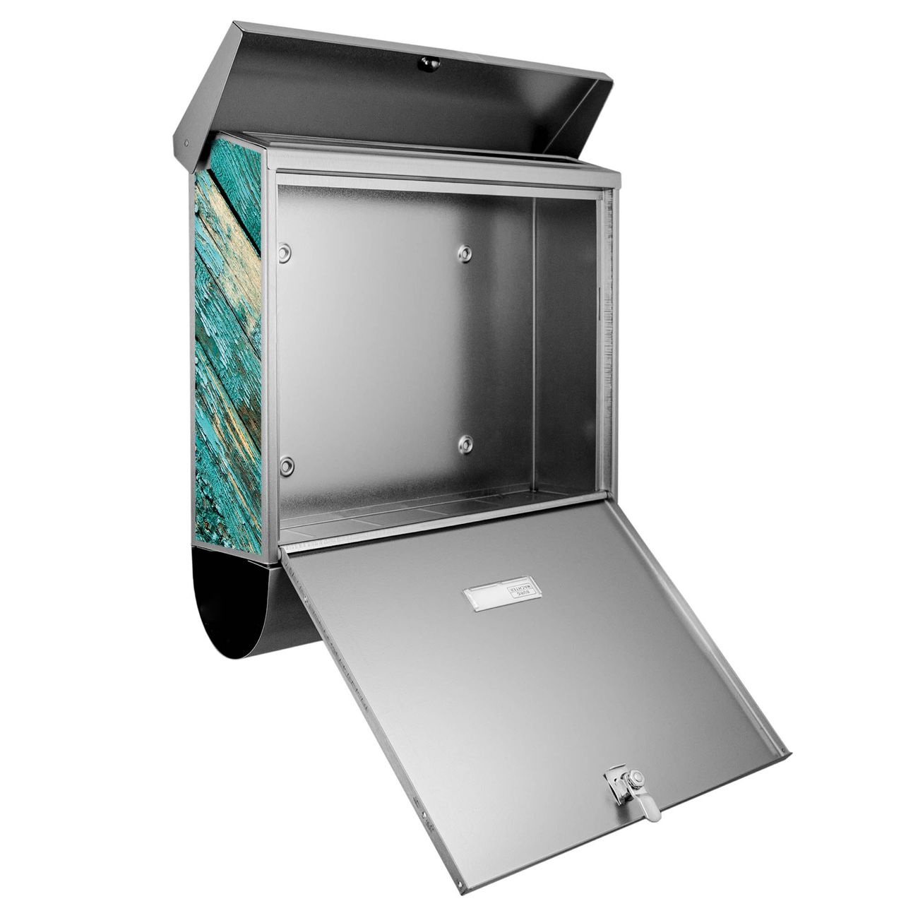 Der BURG-WÄCHTER Edelstahl Briefkasten mit Motiv Altes Holz Blau und Zeitungsrolle bietet Ihnen mit seinem Fassungsvermögen genügend Platz auch für große A4 Sendungen und Zeitschriften. Das integrierte Regendach schützt Ihre Post vor dem Eindringen von Regen.