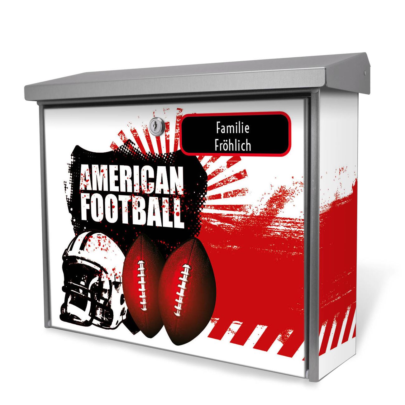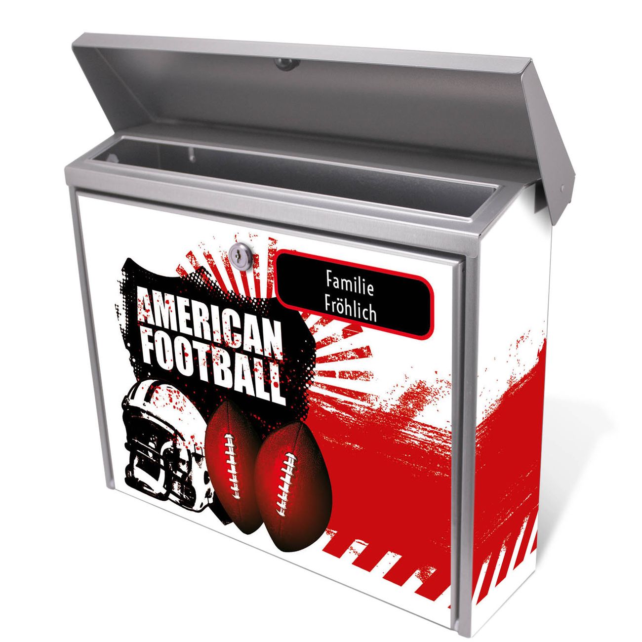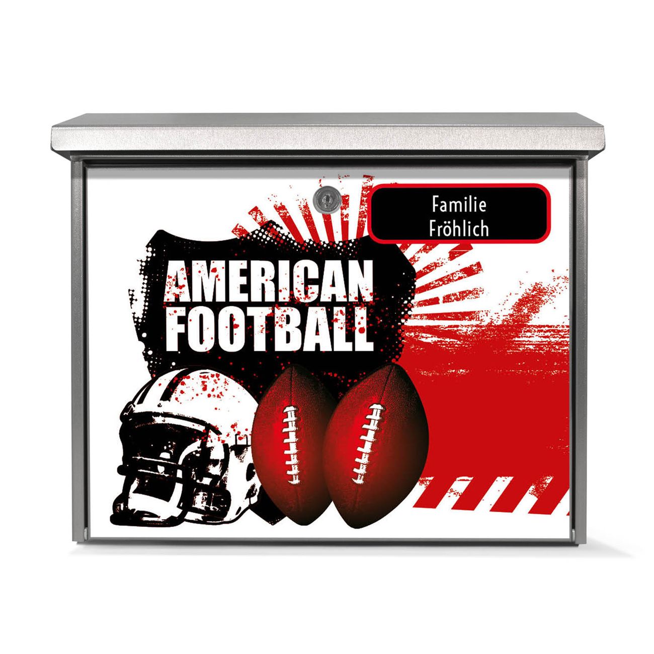 Der Postkasten mit American Football Motiv hat ein sehr ansprechendes und zeitloses Design. Unsere Motivpalette hält jede Menge Varianten bereit, ob klassisch, modern, verspielt oder witzig - für jeden haben wir das passende Motiv parat. Der Briefkasten ist das Aushängeschild Ihres Hauses.