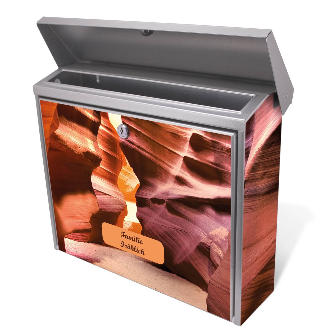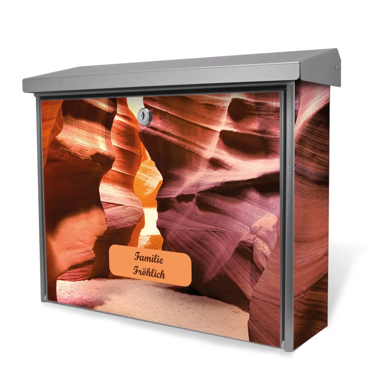 Der Postkasten mit Antelope Canyon Motiv hat ein sehr ansprechendes und zeitloses Design. Unsere Motivpalette hält jede Menge Varianten bereit, ob klassisch, modern, verspielt oder witzig - für jeden haben wir das passende Motiv parat. Der Briefkasten ist das Aushängeschild Ihres Hauses.