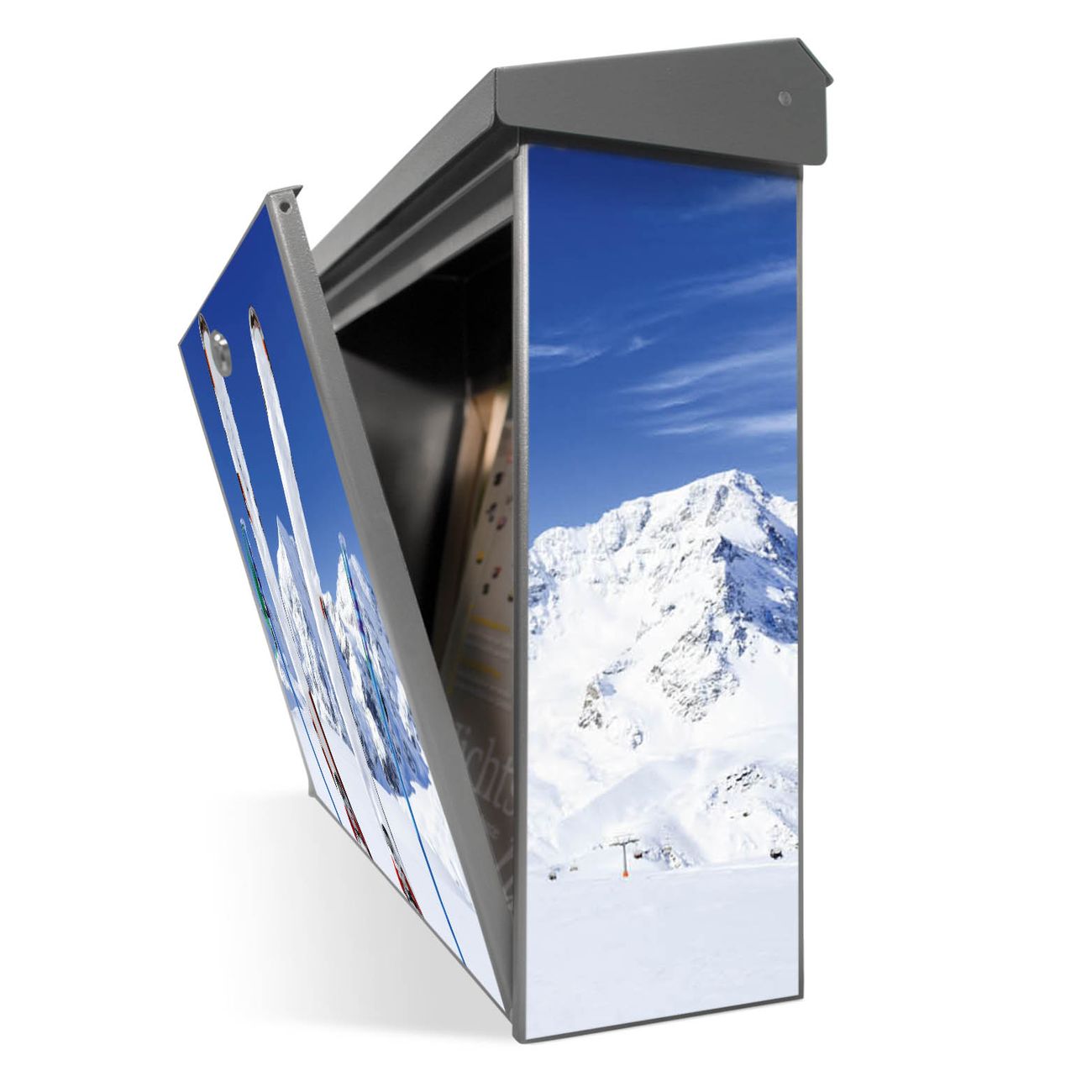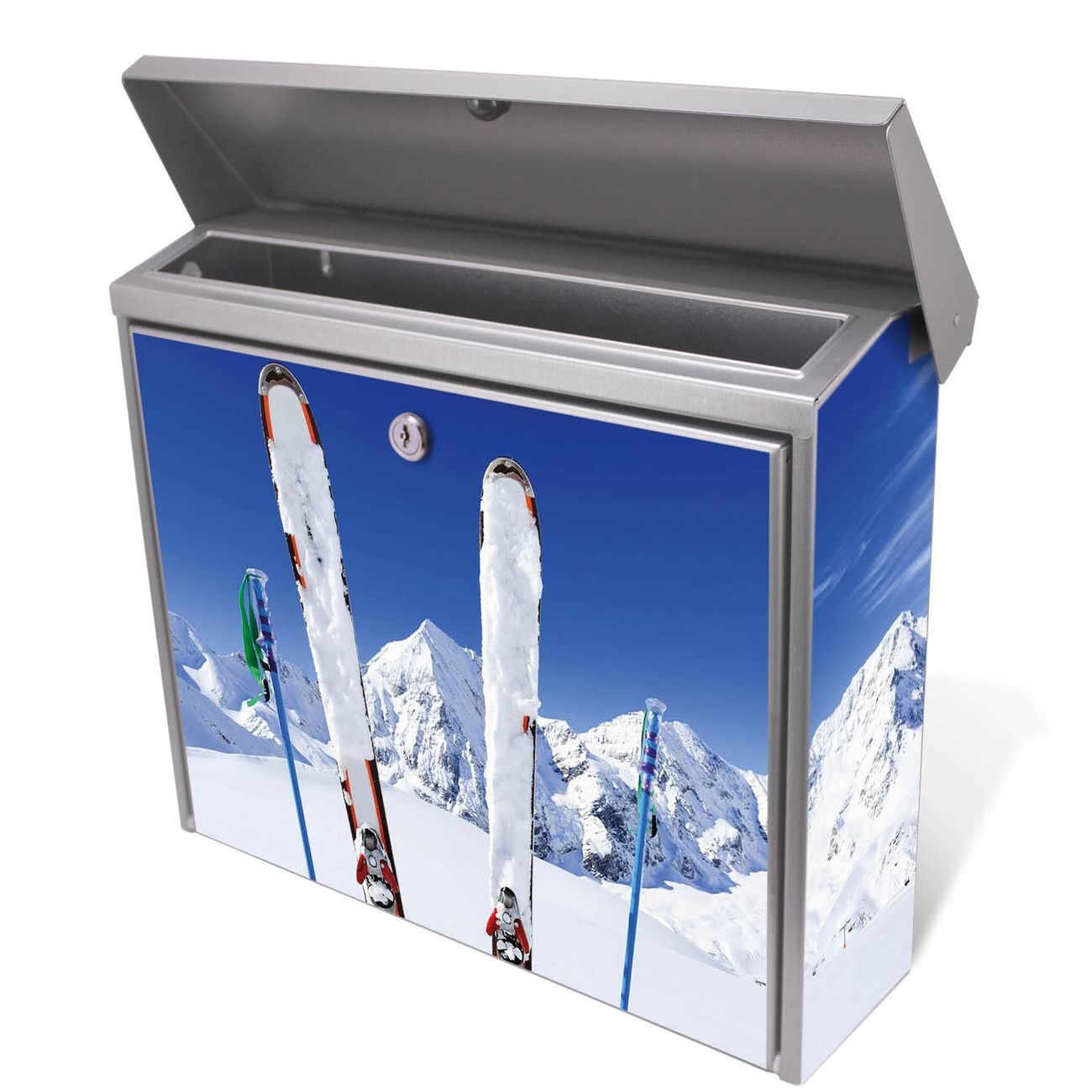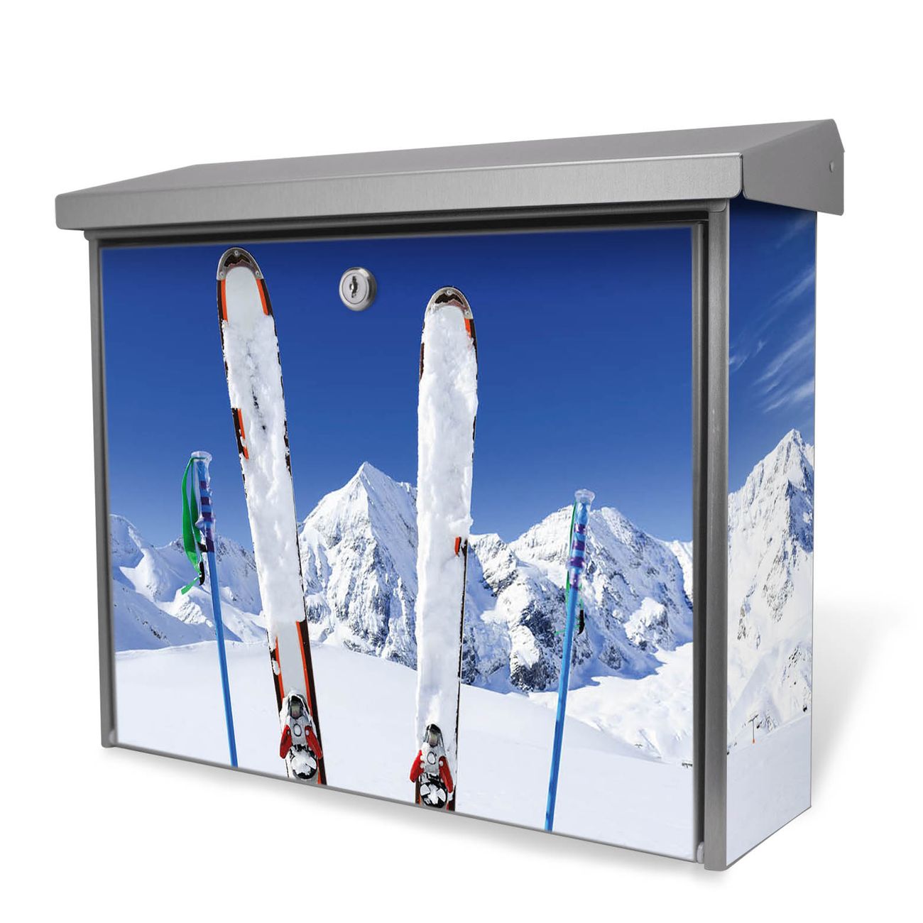 Der Postkasten mit Apres Ski Motiv hat ein sehr ansprechendes und zeitloses Design. Unsere Motivpalette hält jede Menge Varianten bereit, ob klassisch, modern, verspielt oder witzig - für jeden haben wir das passende Motiv parat. Der Briefkasten ist das Aushängeschild Ihres Hauses.