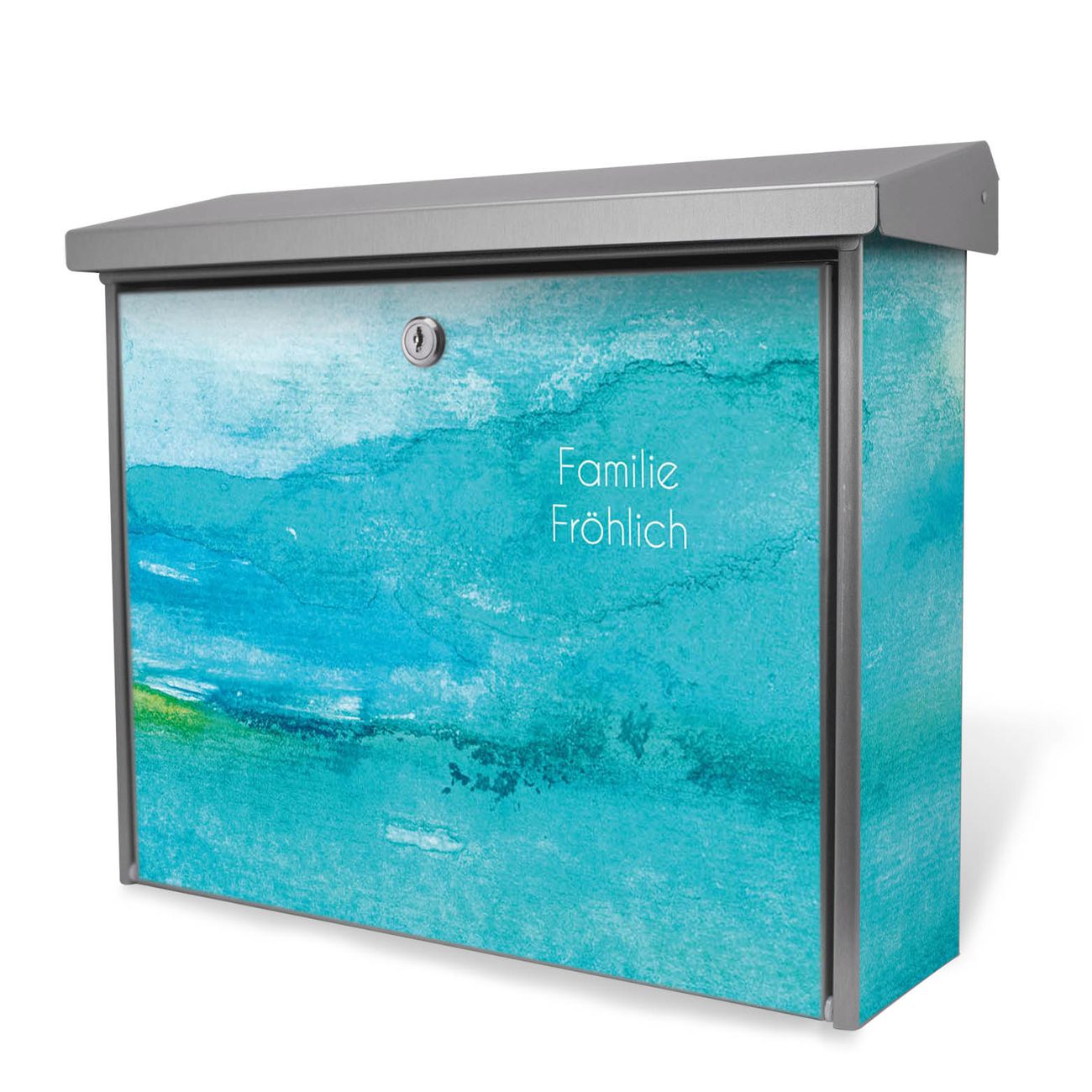 Der Postkasten mit Aquarell Blau Motiv hat ein sehr ansprechendes und zeitloses Design. Unsere Motivpalette hält jede Menge Varianten bereit, ob klassisch, modern, verspielt oder witzig - für jeden haben wir das passende Motiv parat. Der Briefkasten ist das Aushängeschild Ihres Hauses.