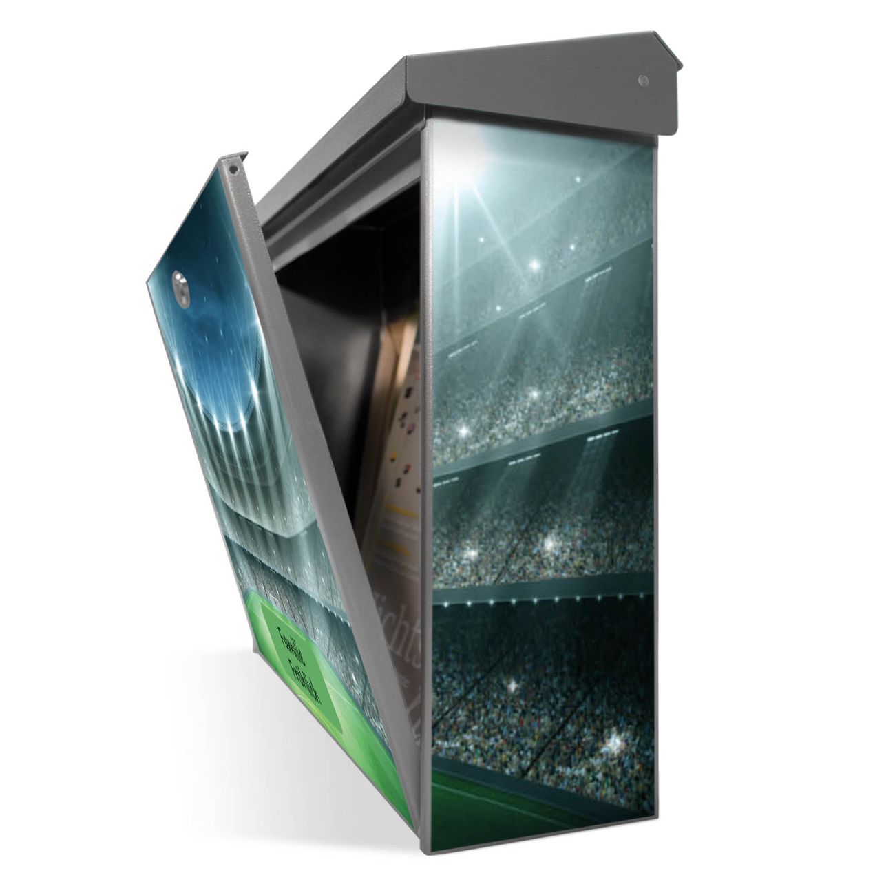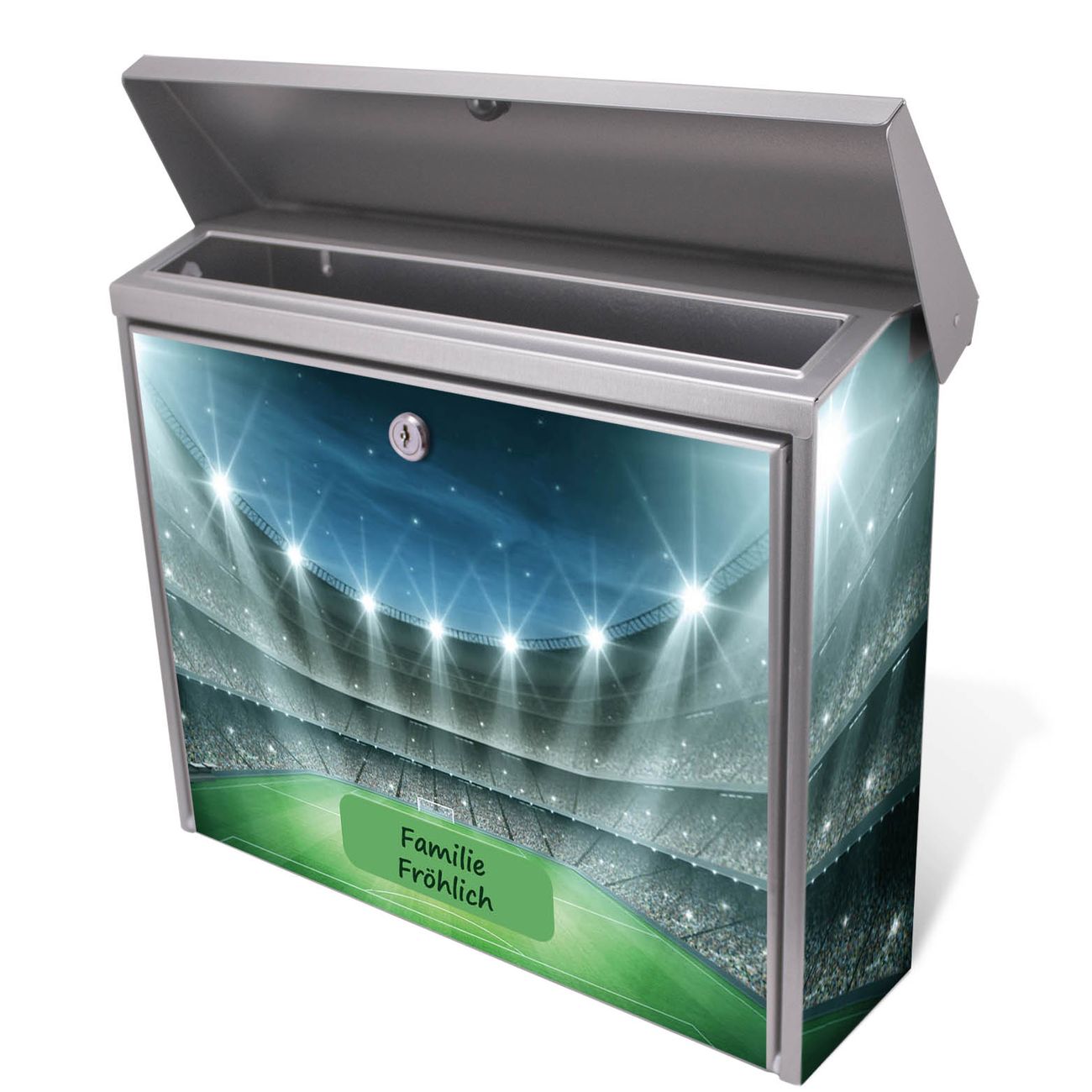 Der Postkasten mit Arena Motiv hat ein sehr ansprechendes und zeitloses Design. Unsere Motivpalette hält jede Menge Varianten bereit, ob klassisch, modern, verspielt oder witzig - für jeden haben wir das passende Motiv parat. Der Briefkasten ist das Aushängeschild Ihres Hauses.