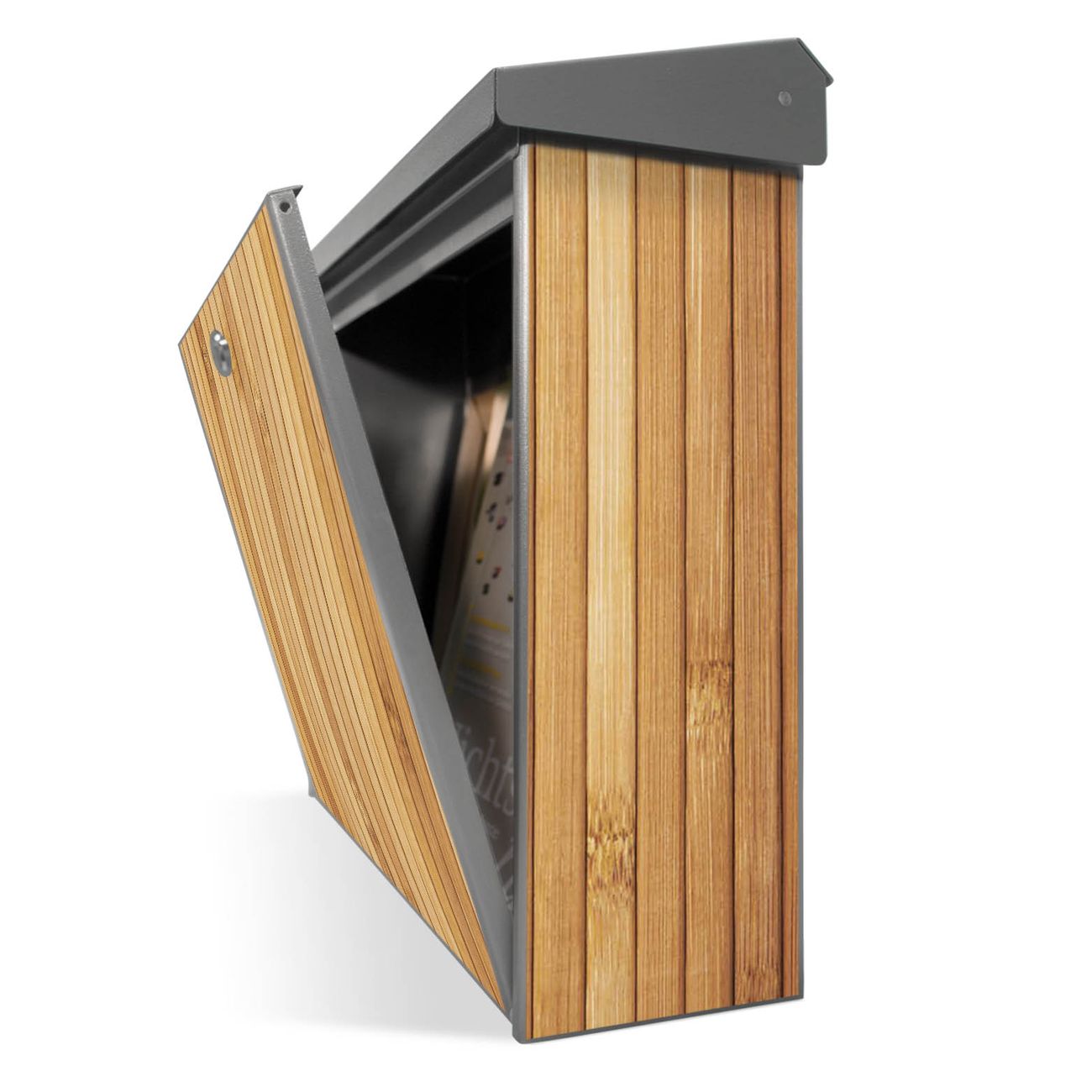 Der BURG-WÄCHTER Edelstahl Briefkasten mit Motiv Bambusholz bietet Ihnen mit seinem Fassungsvermögen genügend Platz auch für große A4 Sendungen und Zeitschriften. Das integrierte Regendach schützt Ihre Post vor dem Eindringen von Regen.