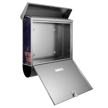 Der Briefkasten besteht aus Edelstahl, einem hochwertigen Material das rostfrei und äußerst unempfindlich gegenüber Witterungseinflüssen ist. Das Motiv besteht aus einer wetter- und UV-festen Folie, die Ihren Briefkasten zusätzlich vor Kratzern schützt. Der Postkasten ist je nach Auswahl 38 x 39 x 12 CM oder 38 x 31,5 x 12 cm (BxHxT) groß. Der Briefeinwurf ist 33,2cm x 3,1cm, Format DIN C4. Der Briefkasten wird mit Montagematerial und zwei Schlüsseln geliefert.