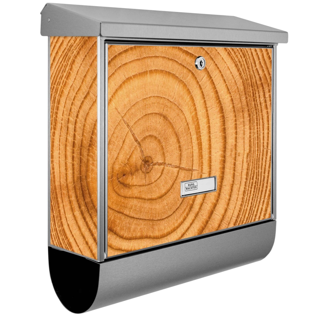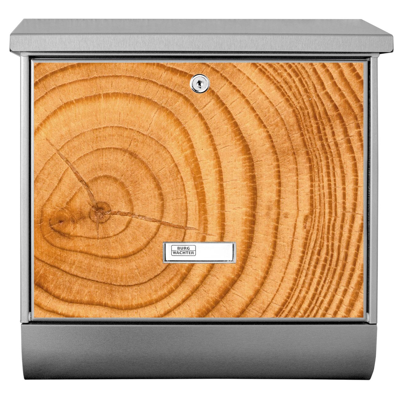 Der BURG-WÄCHTER Edelstahl Briefkasten mit Motiv Baumstamm und Zeitungsrolle bietet Ihnen mit seinem Fassungsvermögen genügend Platz auch für große A4 Sendungen und Zeitschriften. Das integrierte Regendach schützt Ihre Post vor dem Eindringen von Regen.