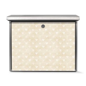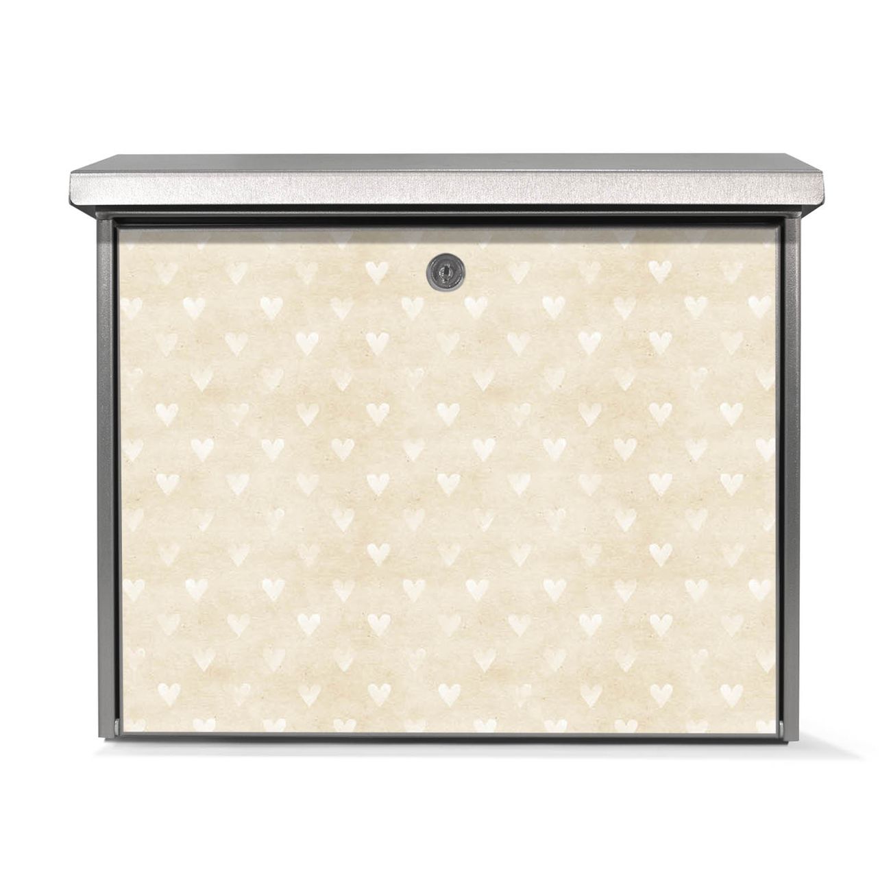 Der Postkasten mit Beige Herzen Motiv hat ein sehr ansprechendes und zeitloses Design. Unsere Motivpalette hält jede Menge Varianten bereit, ob klassisch, modern, verspielt oder witzig - für jeden haben wir das passende Motiv parat. Der Briefkasten ist das Aushängeschild Ihres Hauses.