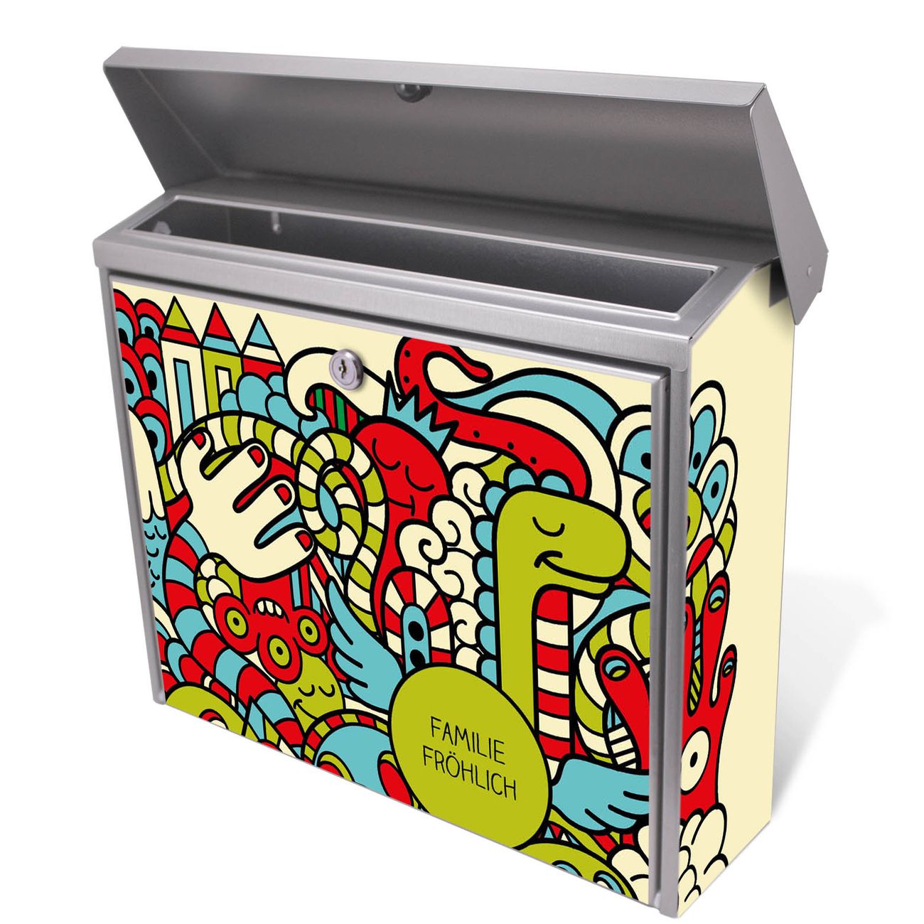 Der Postkasten mit Birds Worms Freaks Motiv hat ein sehr ansprechendes und zeitloses Design. Unsere Motivpalette hält jede Menge Varianten bereit, ob klassisch, modern, verspielt oder witzig - für jeden haben wir das passende Motiv parat. Der Briefkasten ist das Aushängeschild Ihres Hauses.